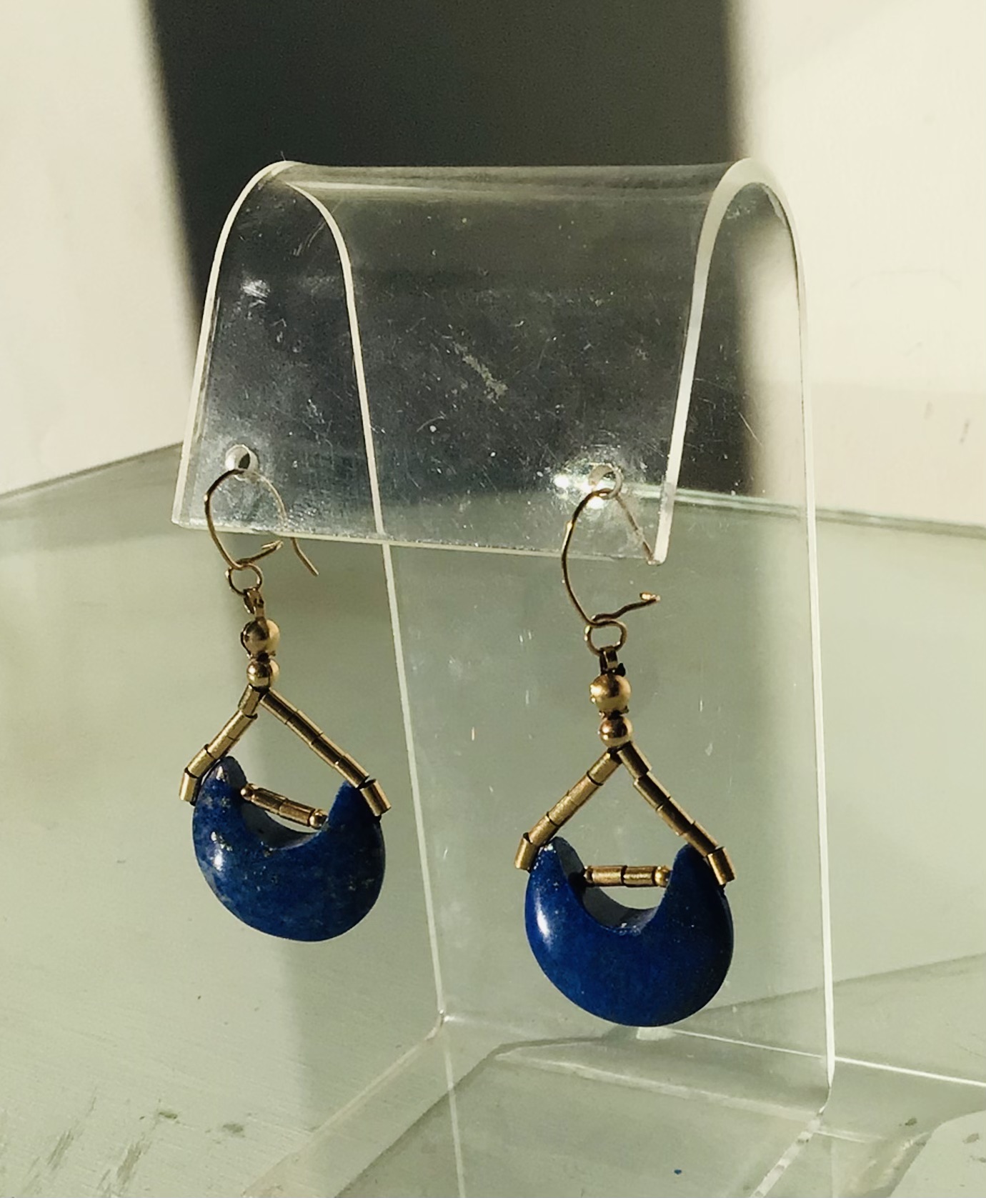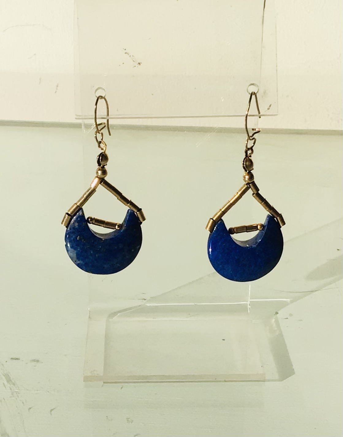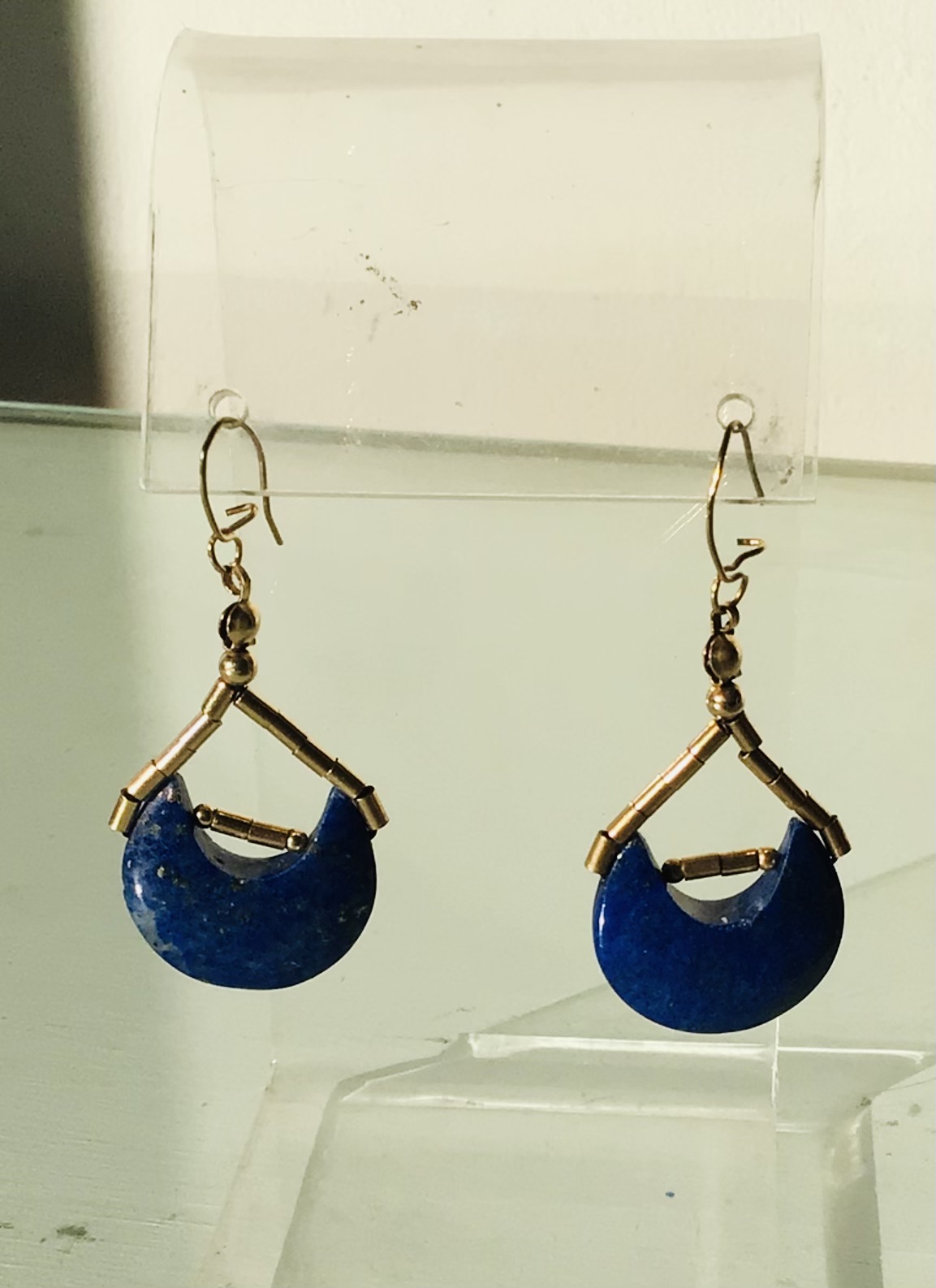 14kgoldfilled lapislázuli EARINGS in half moon Shape