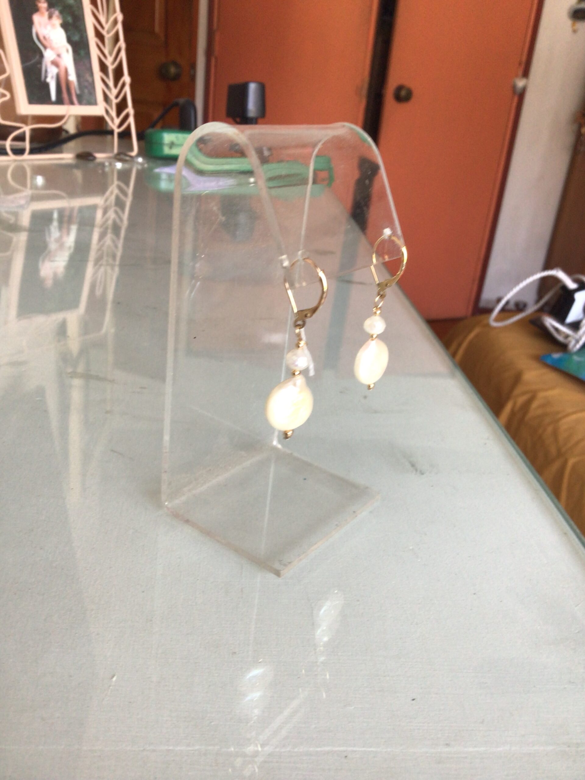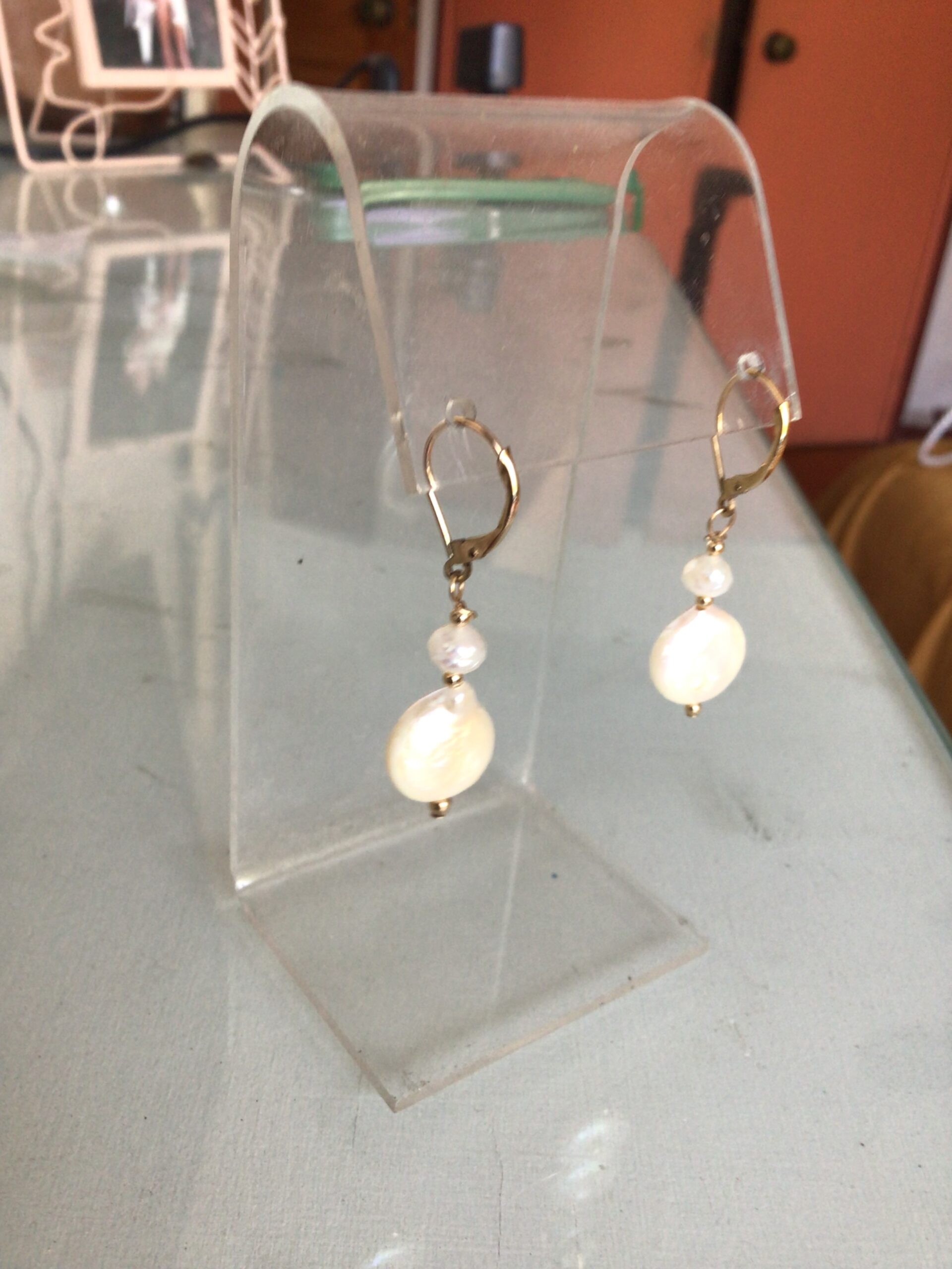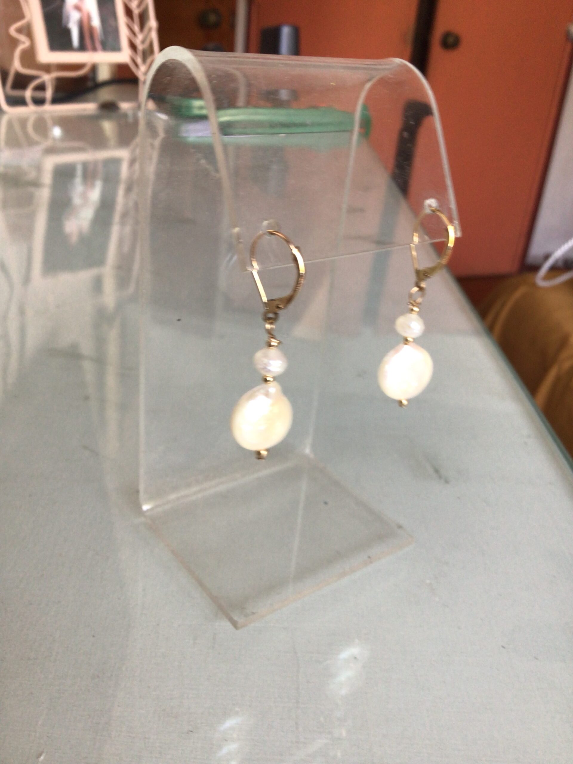 14k goldfilled EARINGS WITH pearl s in diferente shapes