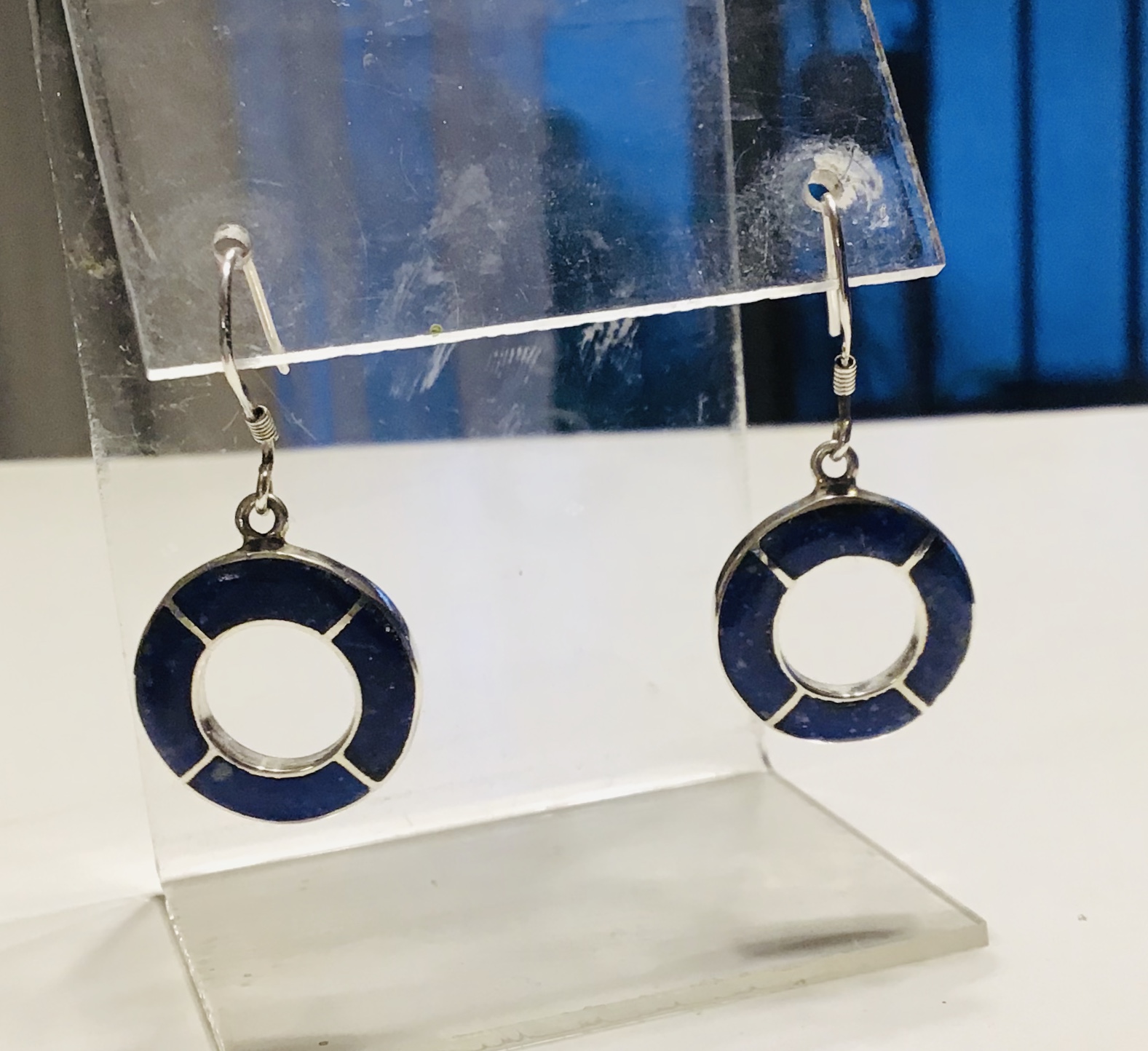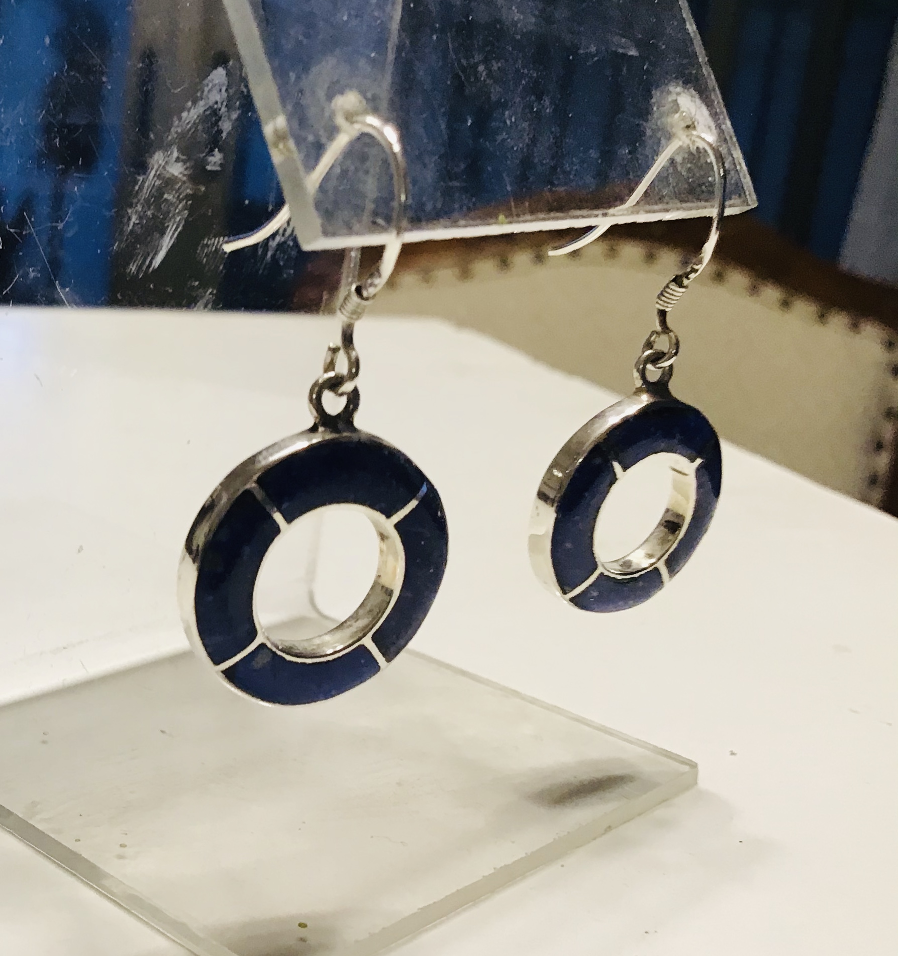 Aros círculo Plata lapislázuli ( hechos a mano) Silver Circle lapislázuli EARINGS Hand made