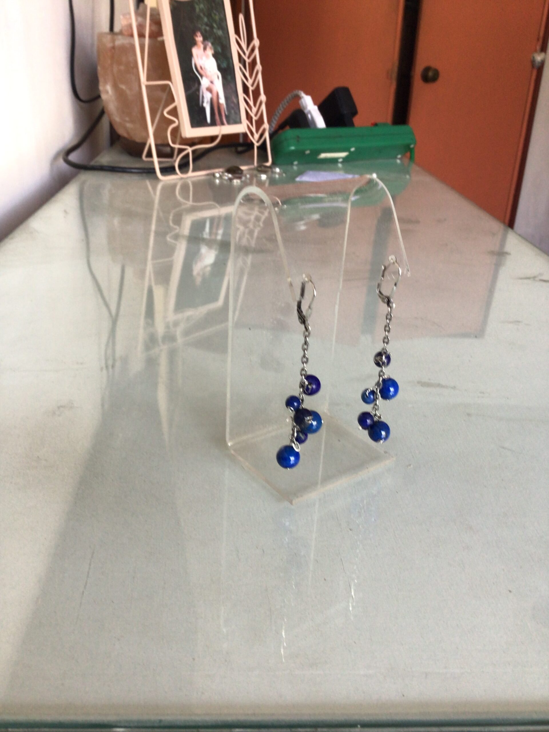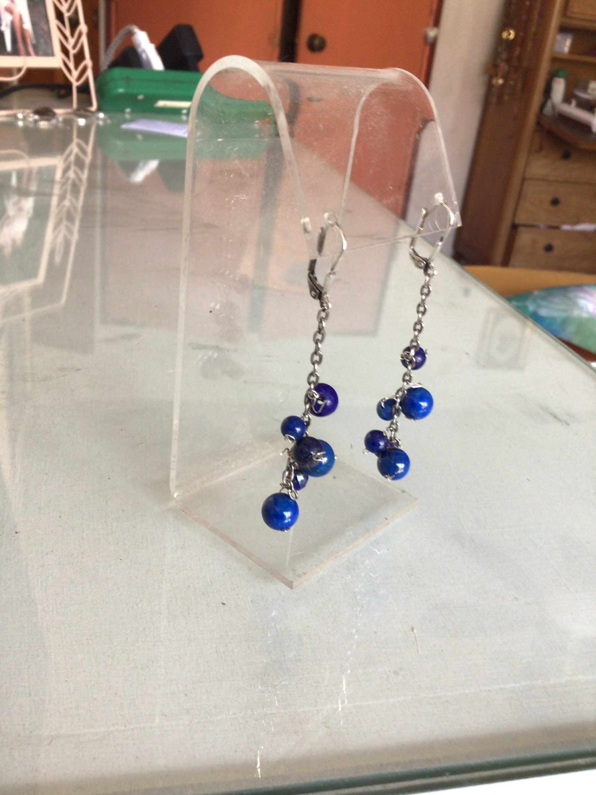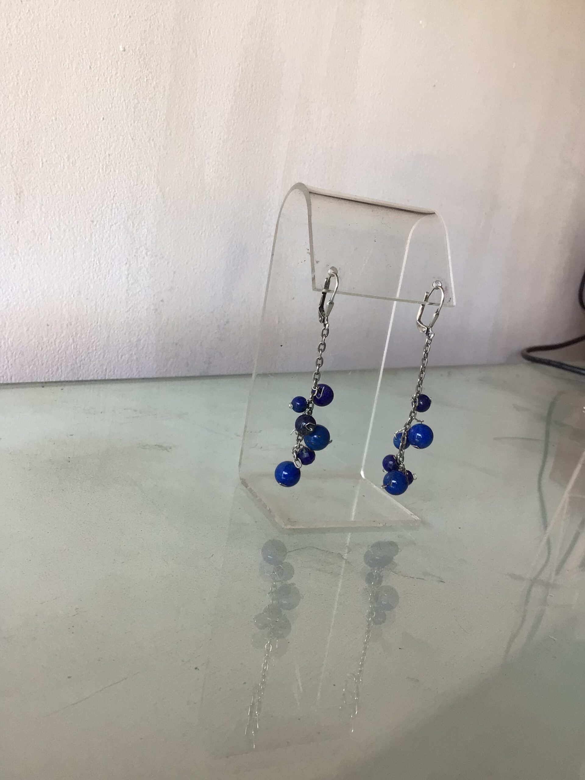 Aros colgantes cadena con bolitas de lapislazuli Silver hunging lapislázuli EARINGS WITH Beats