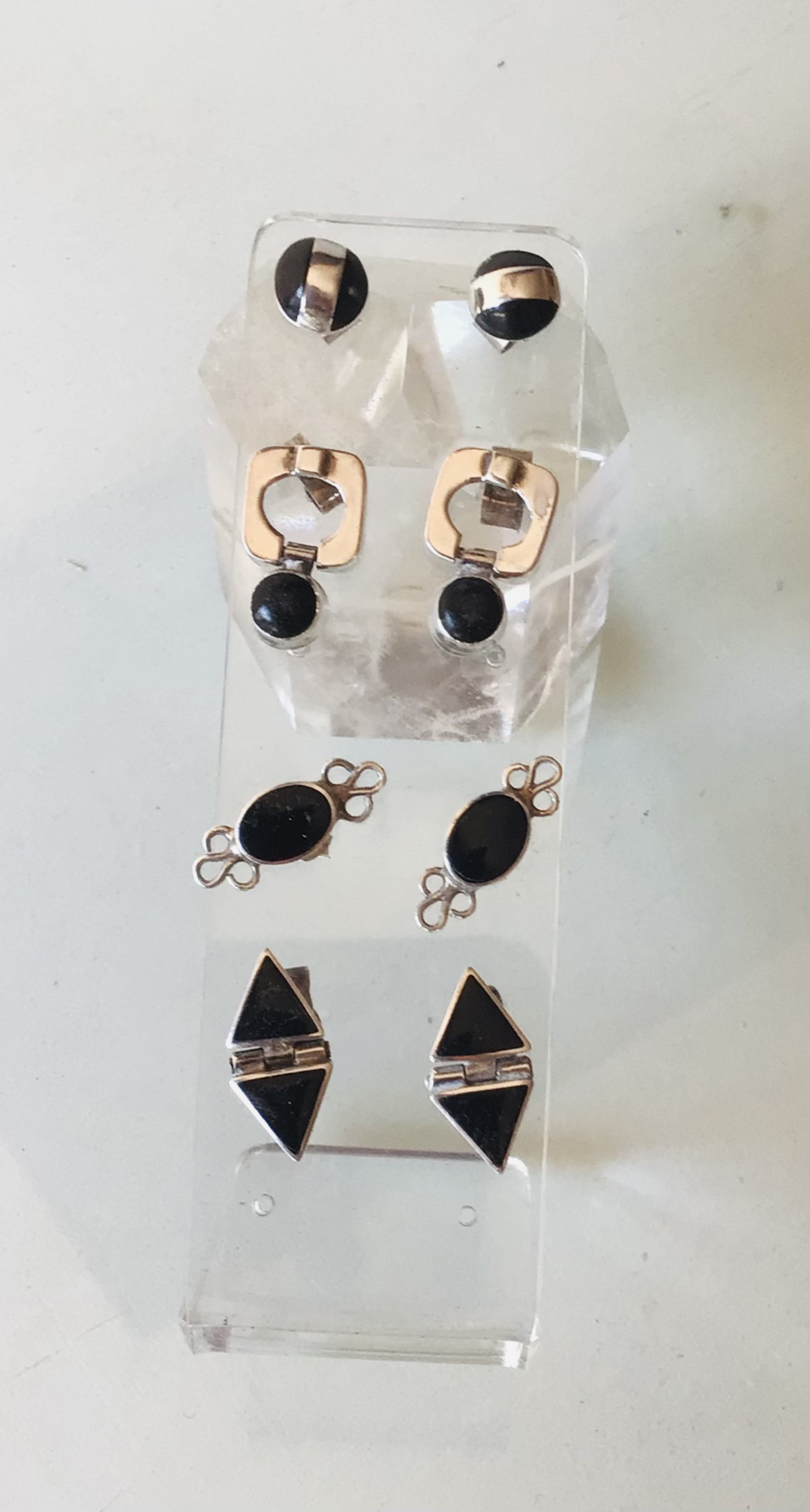 Aros Plata obsidiana ,hechos a mano Silver obsidian EARINGS hand made