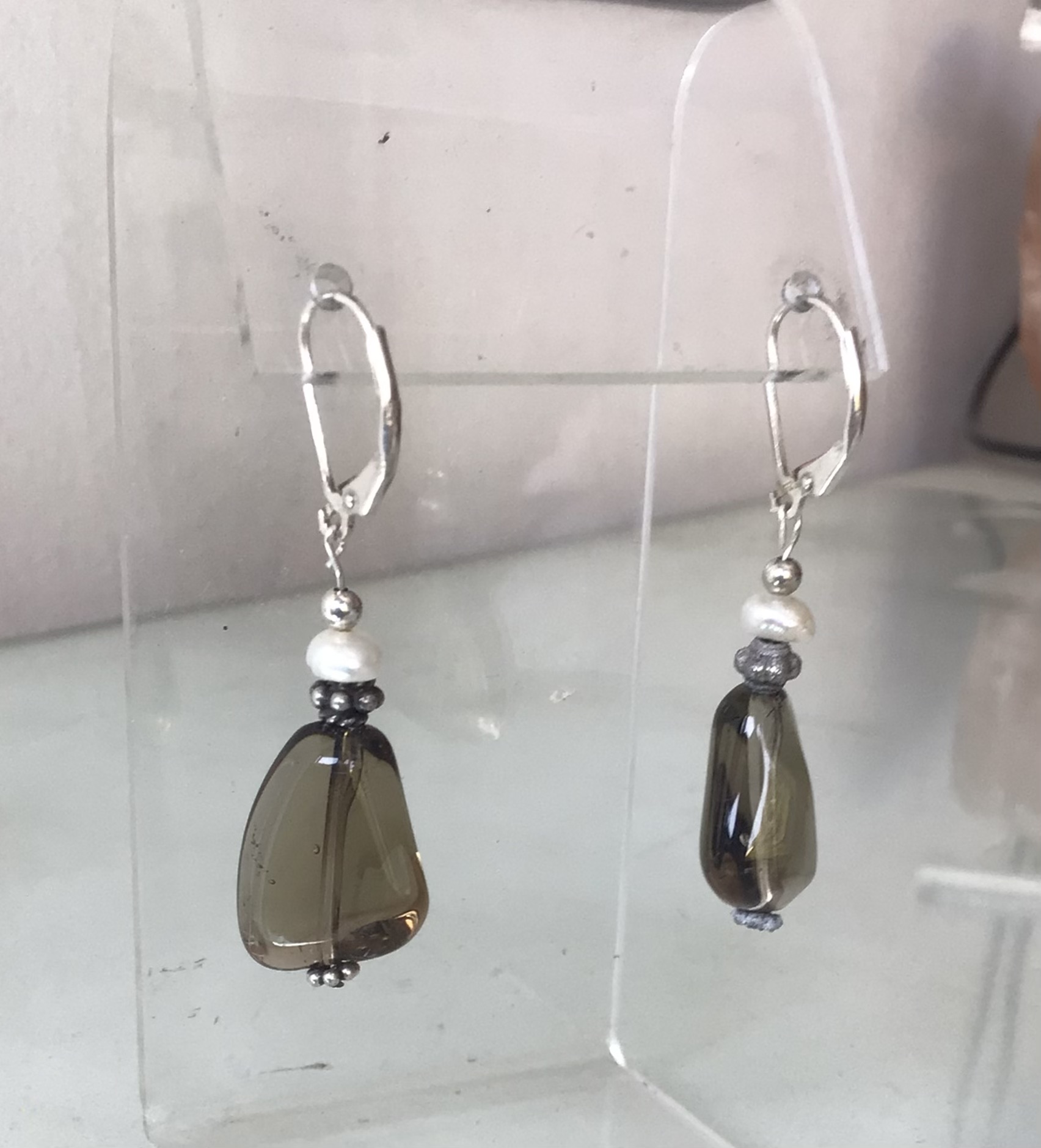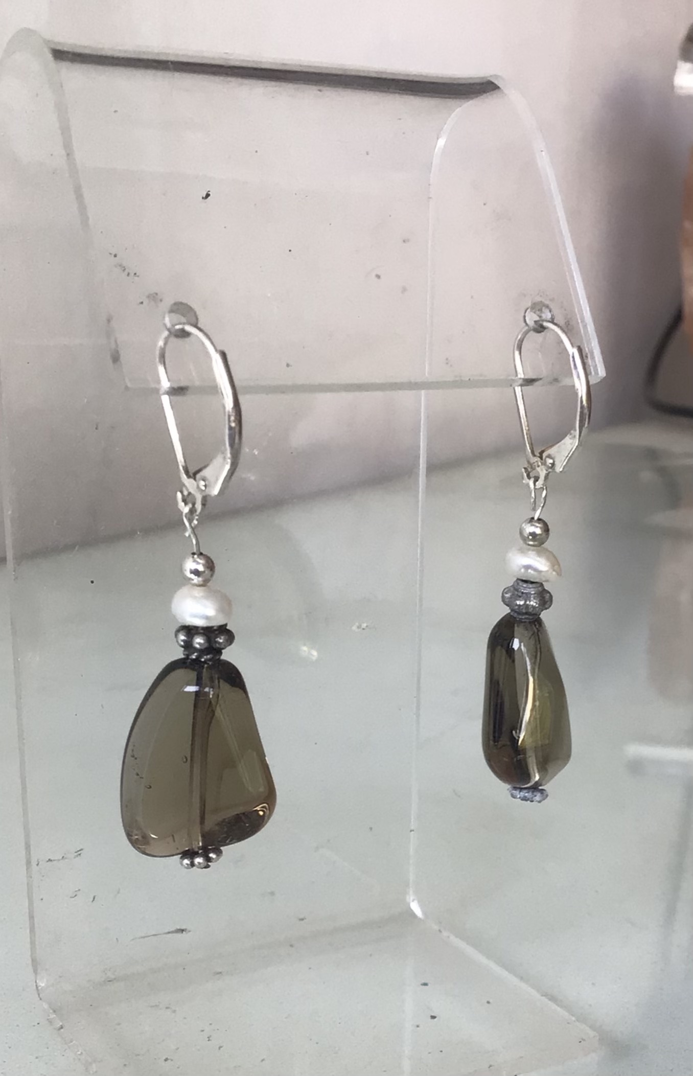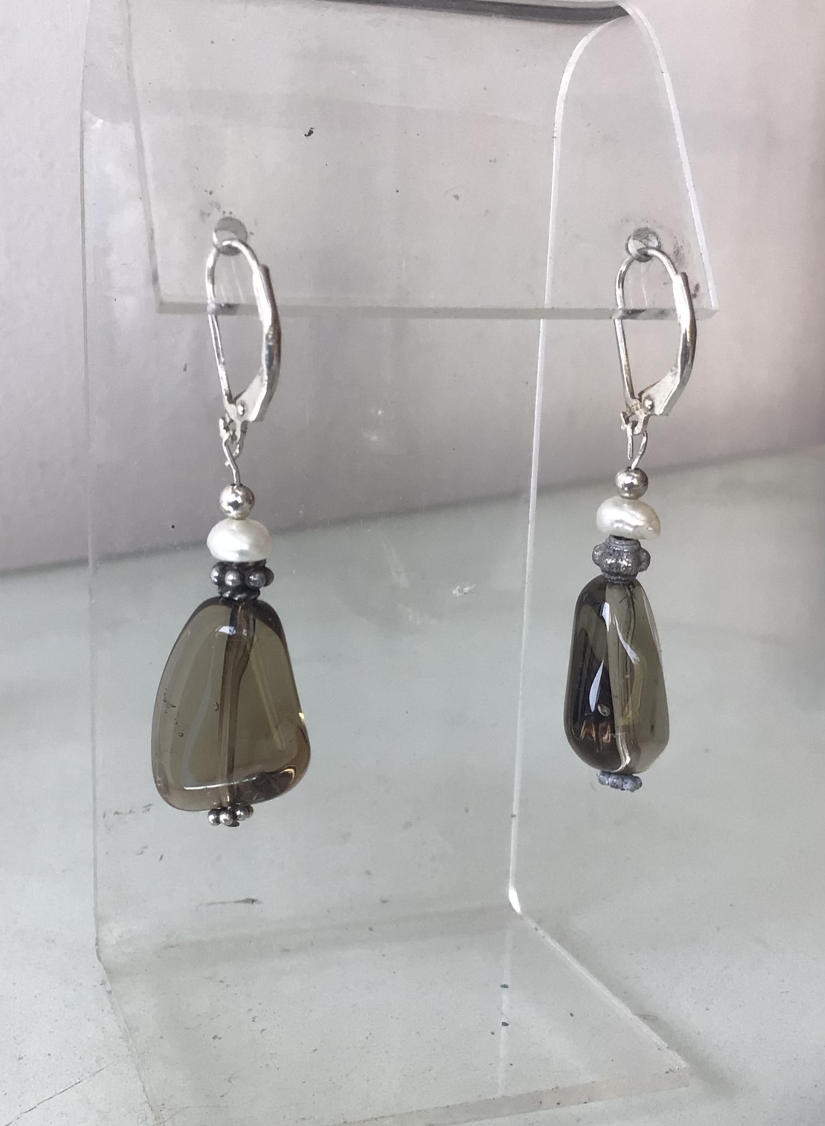 Aros Plata con perla y ágata . Silver EARINGS WITH pearl and agate