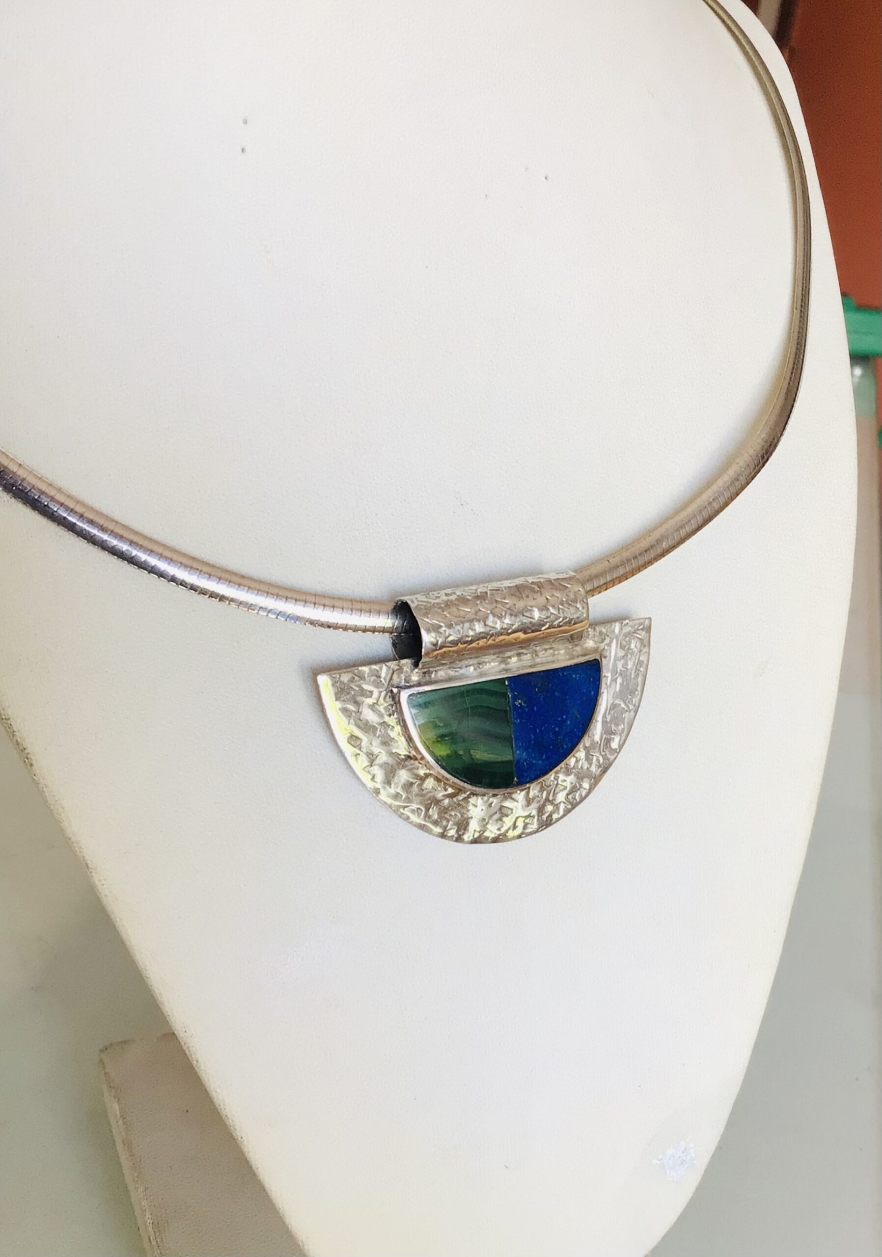 Colgante Plata lapislázuli y malaquita ,hecho a mano Hand made silver pendant lapislázuli and malachite