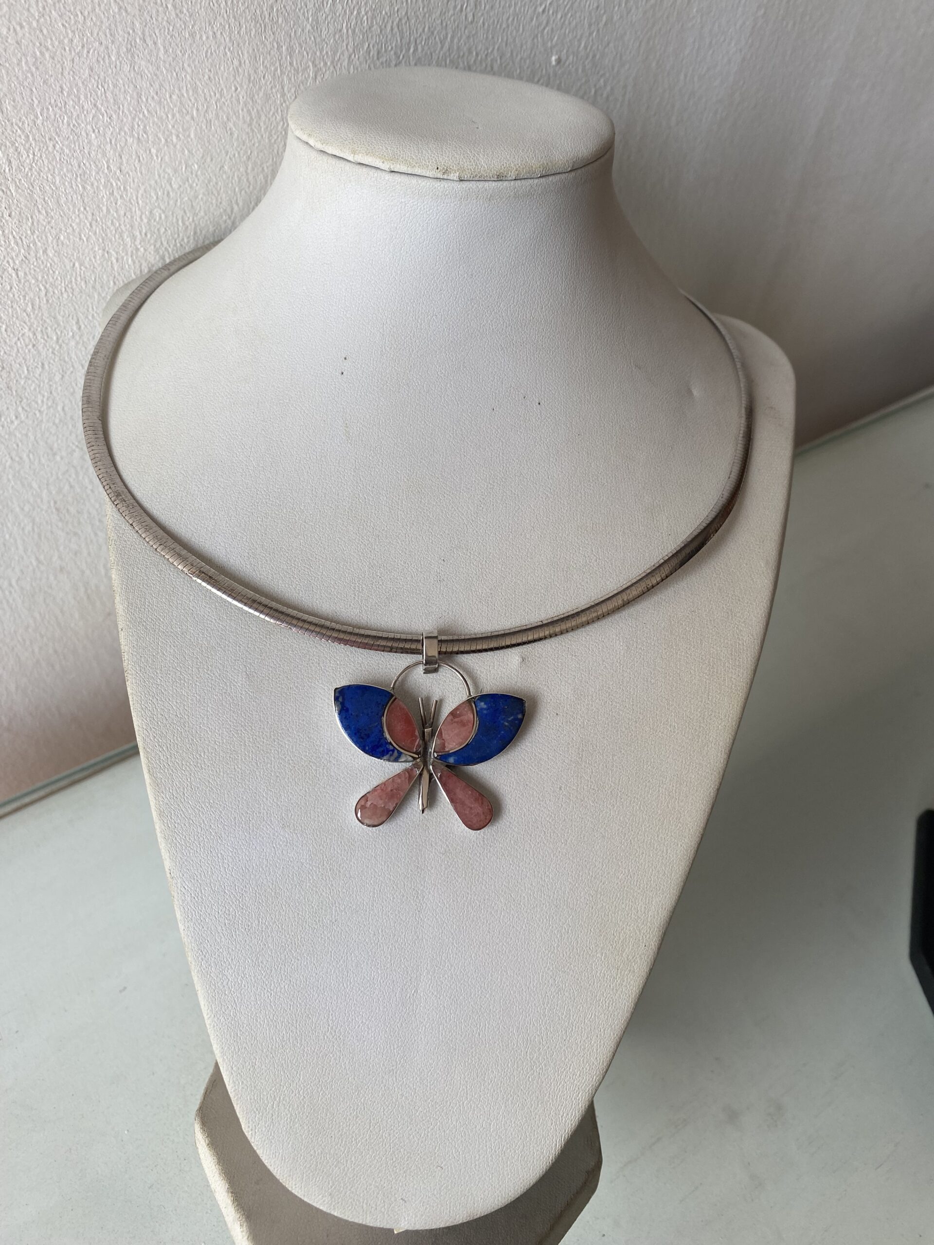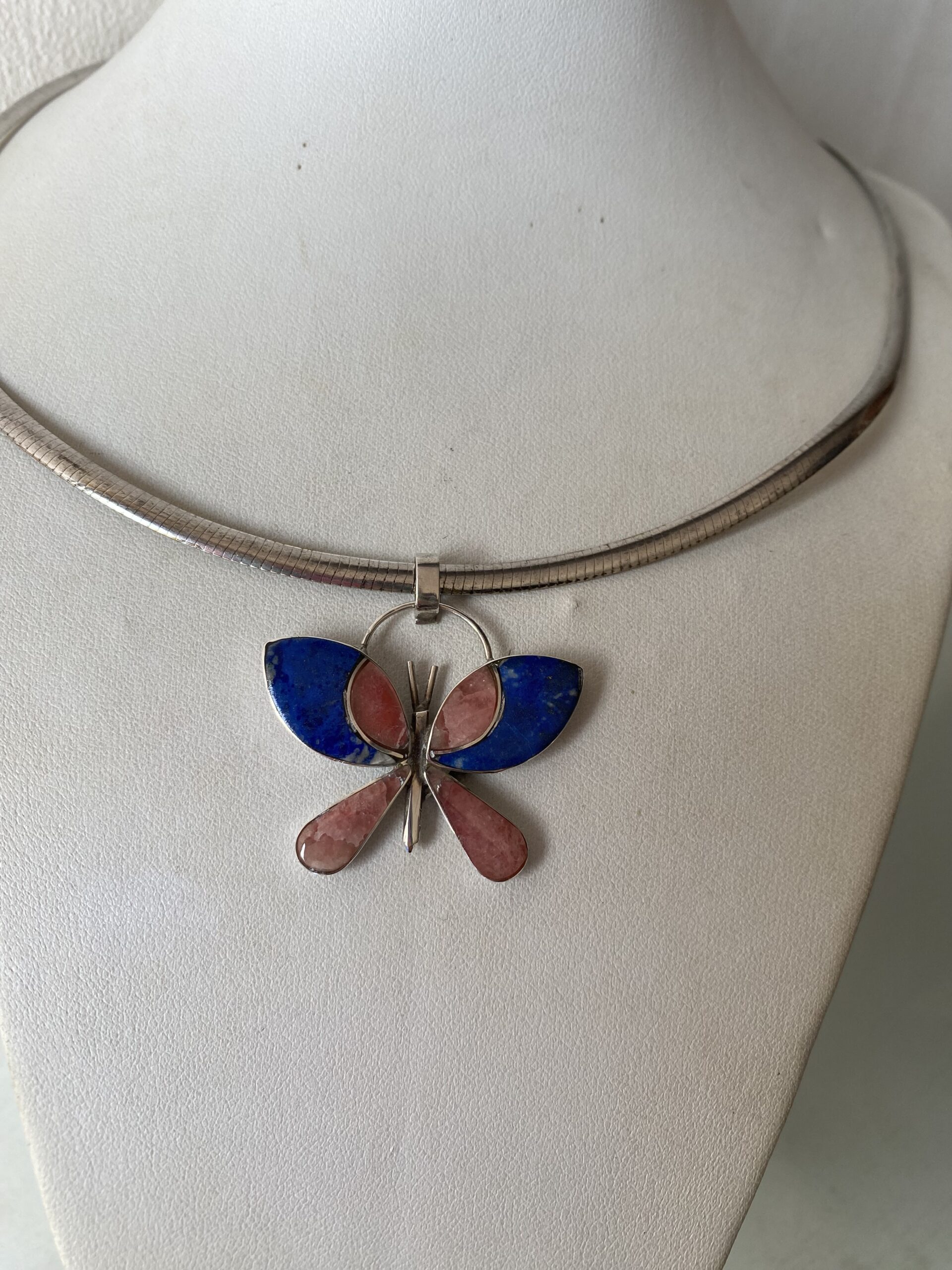 Colgante Plata lapislázuli y rodocrosita mariposa.Hecho a mano