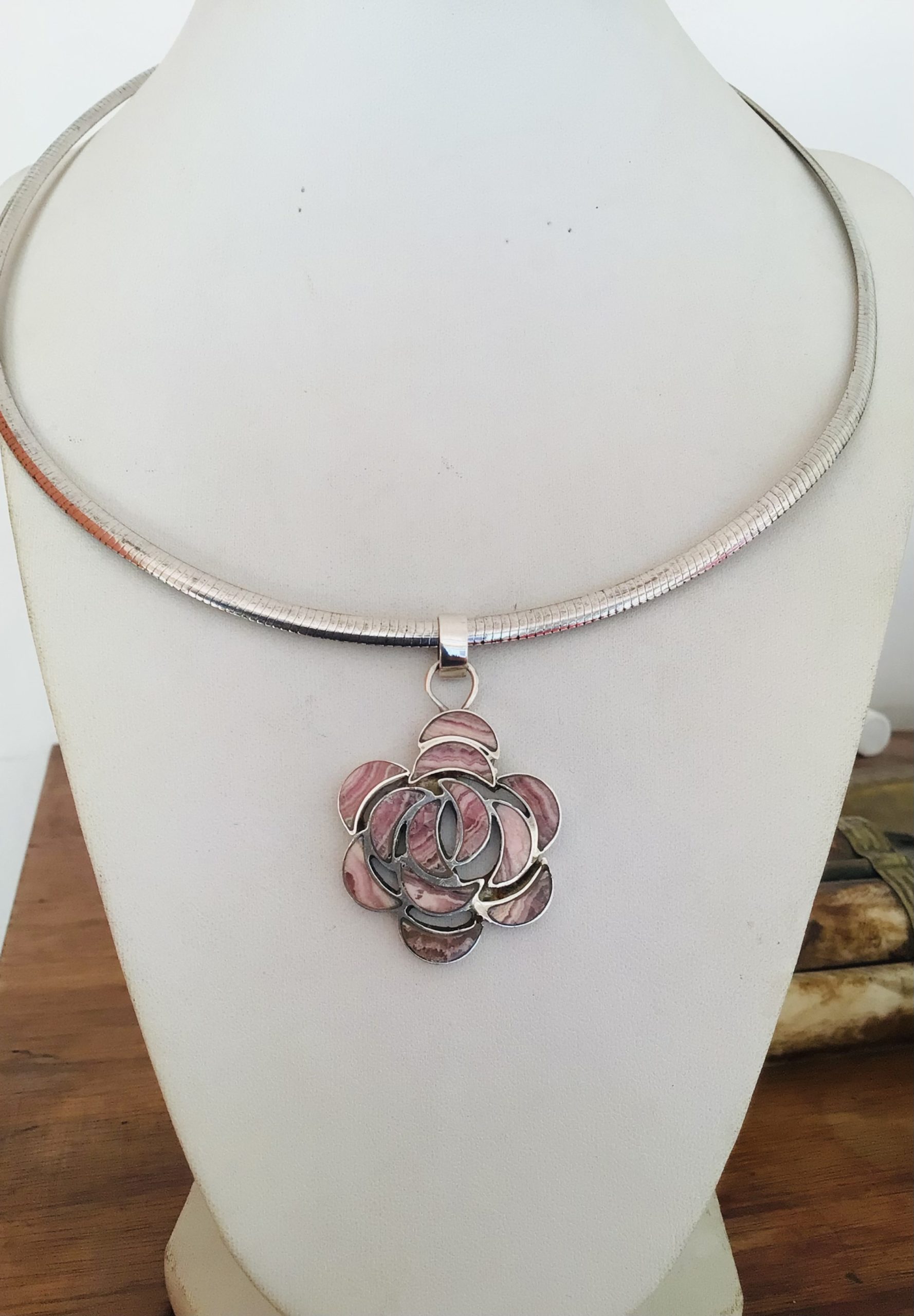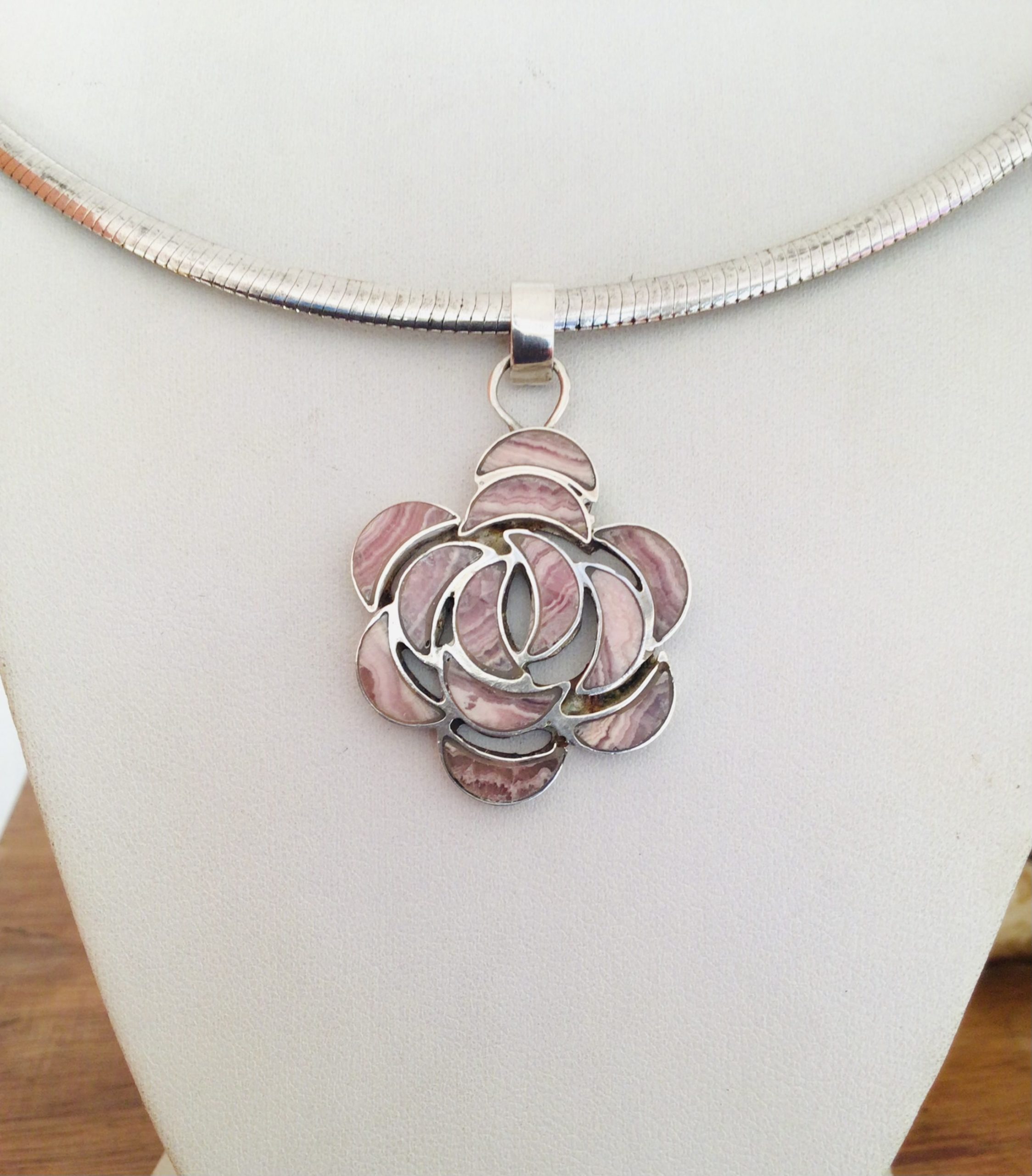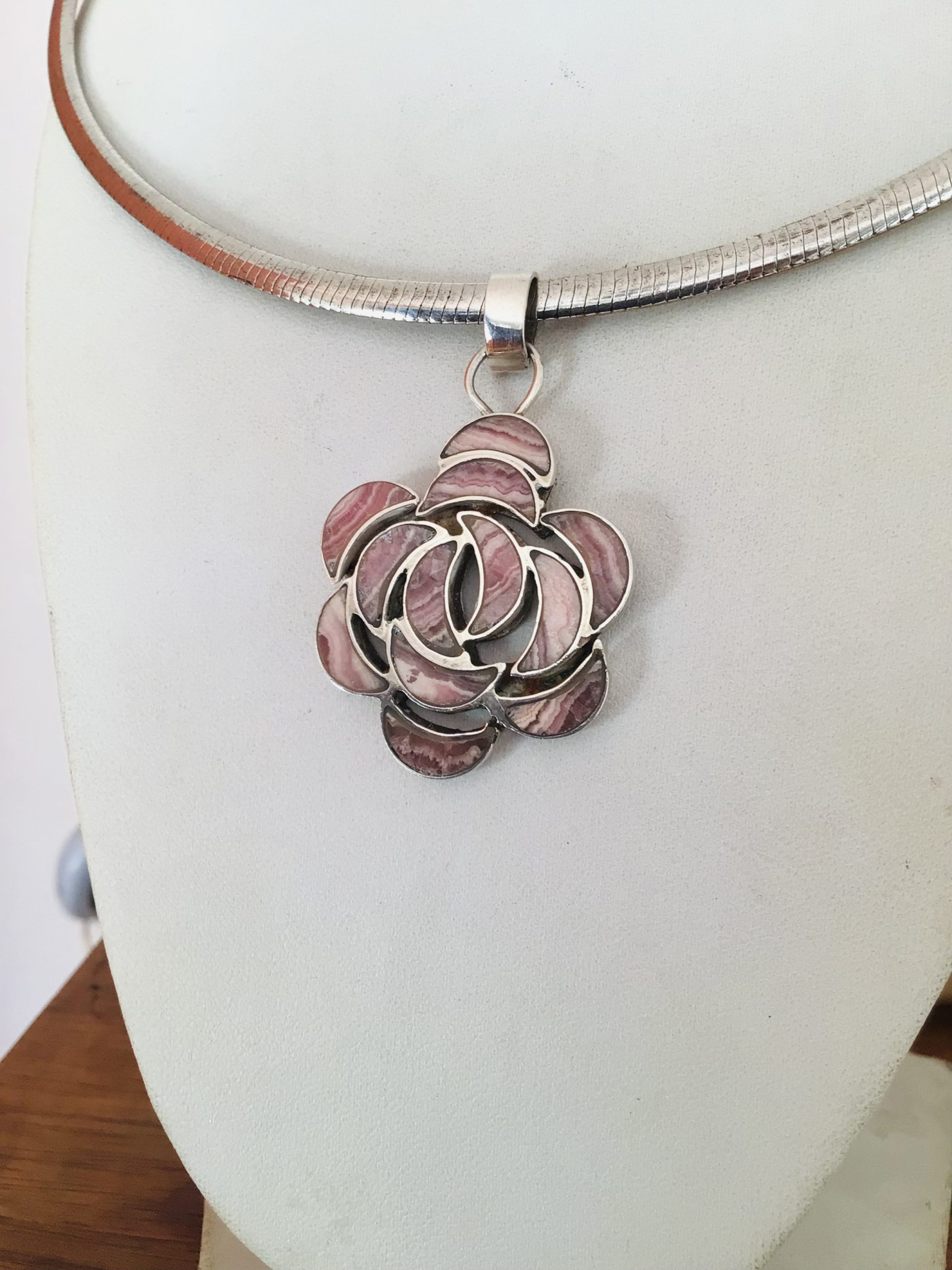 Colgante Plata,rodocrosita, hecho a mano Handmade Silver pendant with rhodochrosite. Hand made