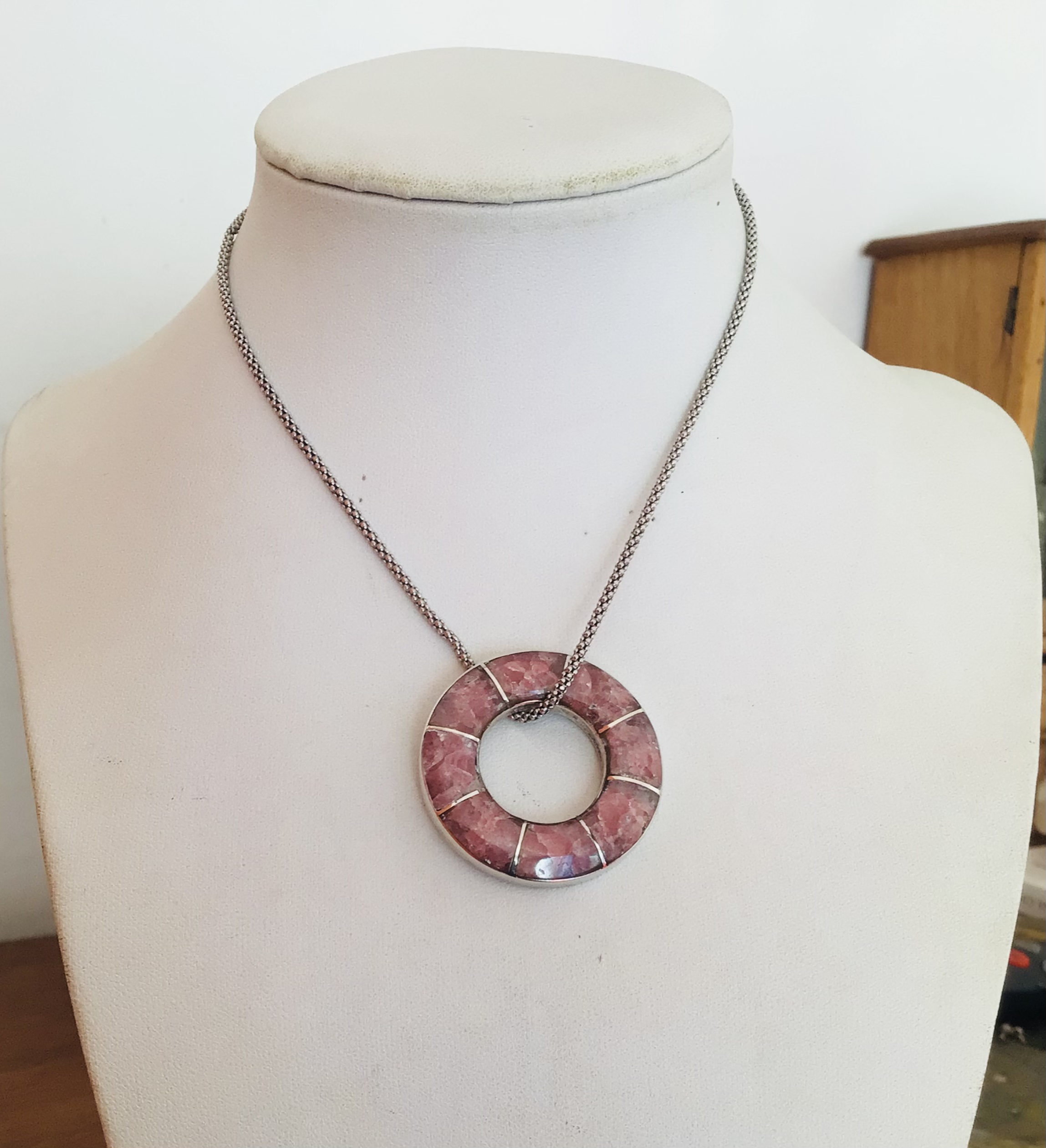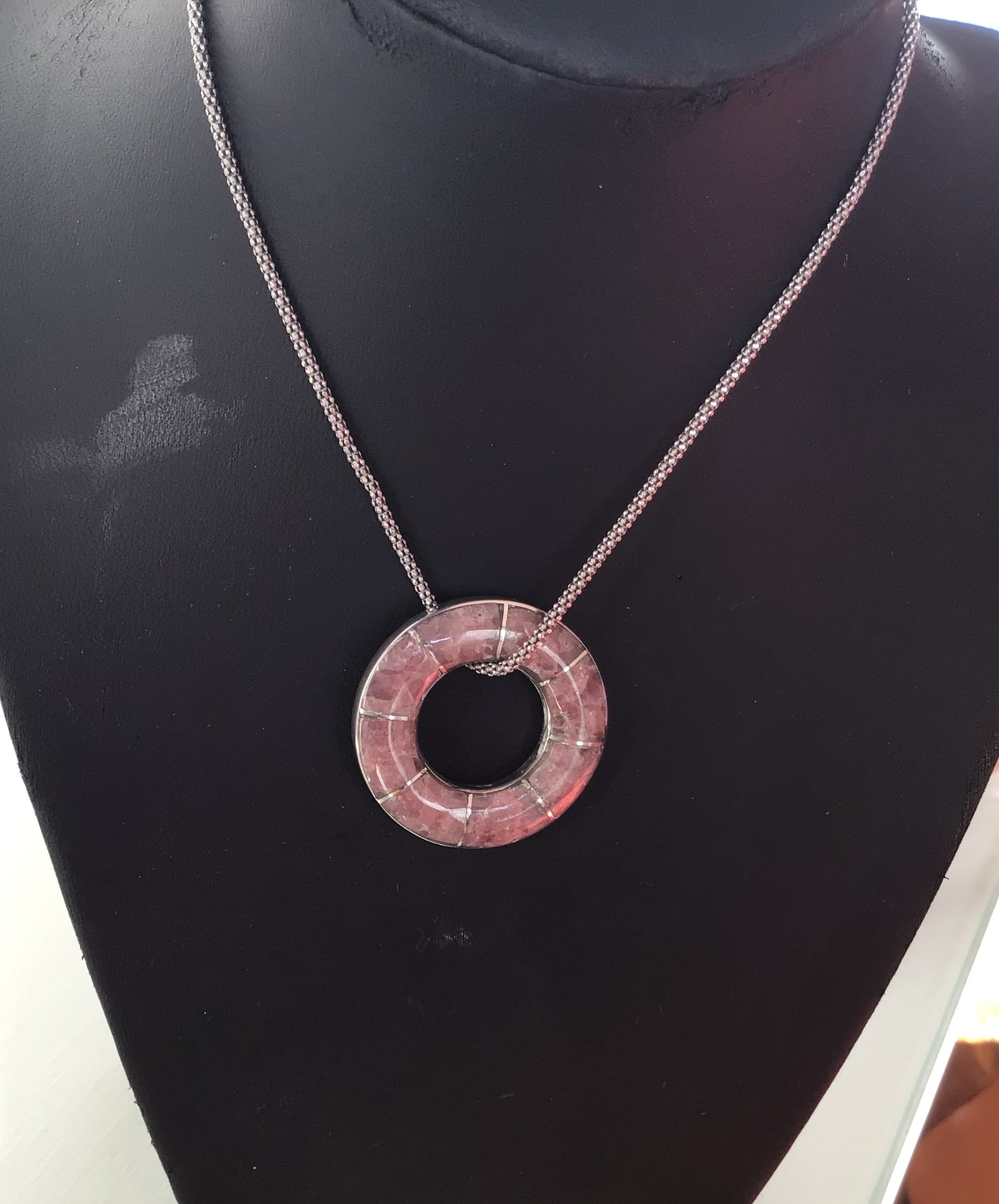 Rosca Plata con rodocrosita .Hecho a mano Silver rhodochrosite pendant .Hand made.