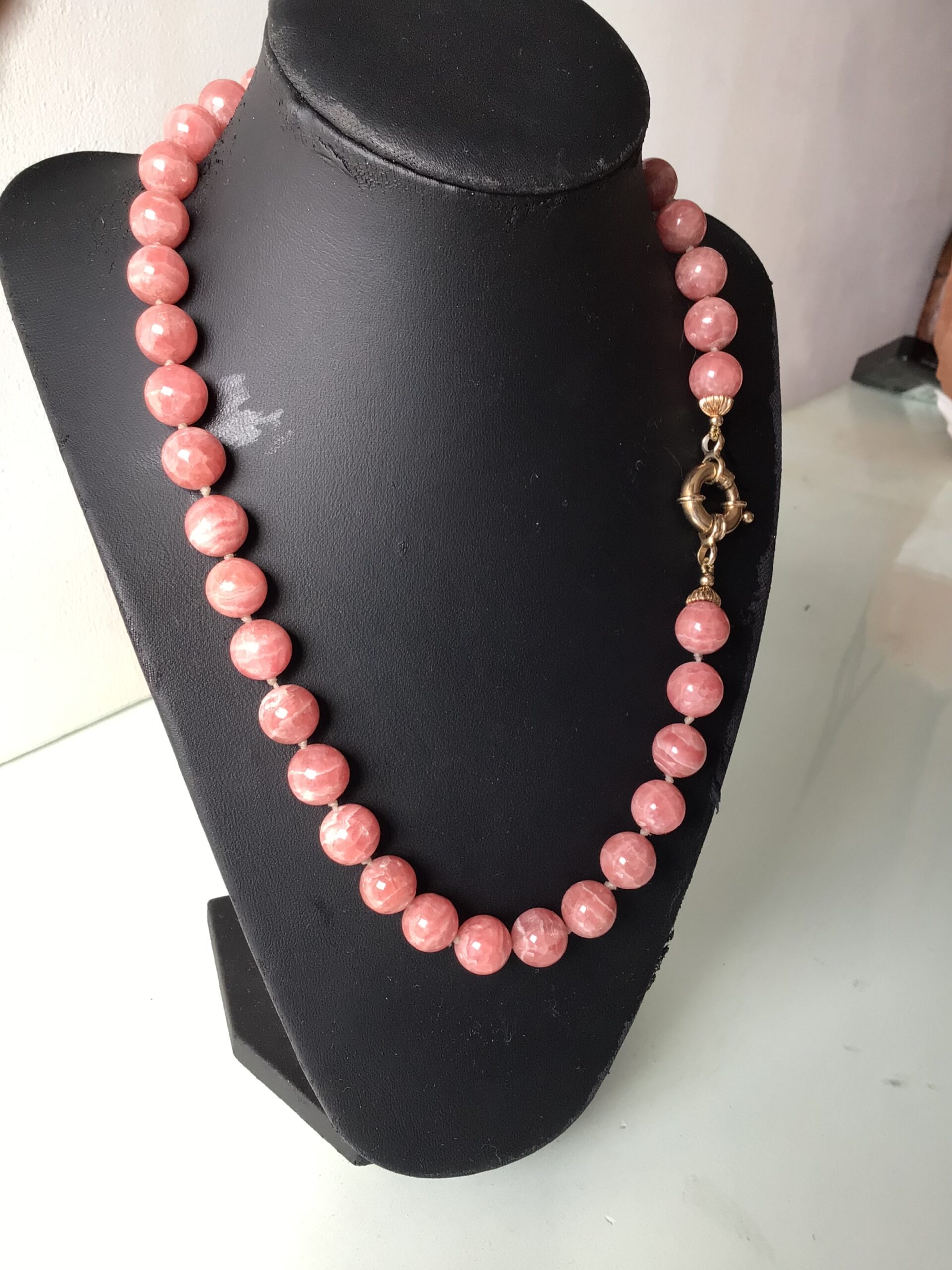 Collar oro 14 k rodocrosita 10 ml 14k solid gold rhodochrosite 10ml necklace