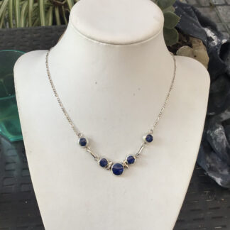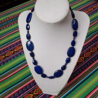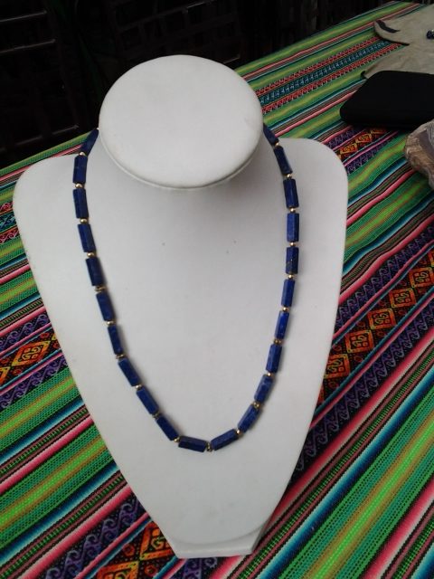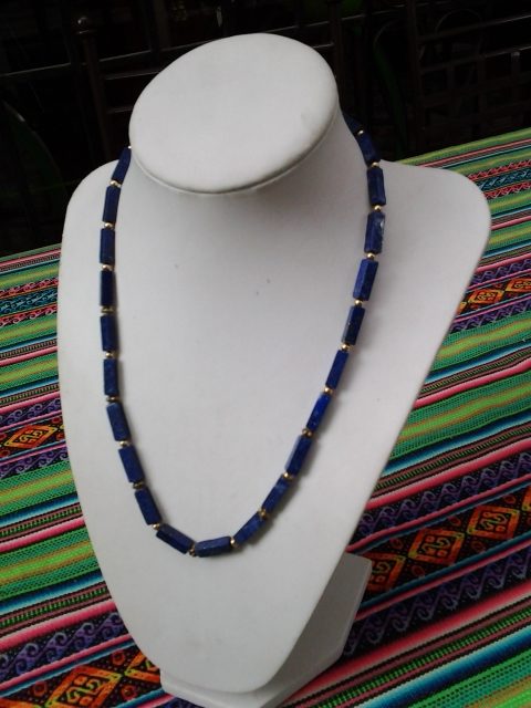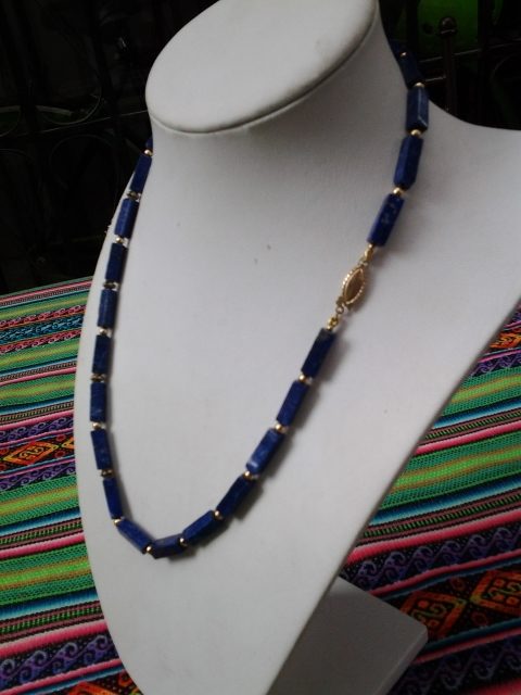 COLLAR LAPISLAZULI FACETADO EN RECTANGULOS ALARGADOS CON BOLITAS DE 3 ML Y CIERRE 14K.
