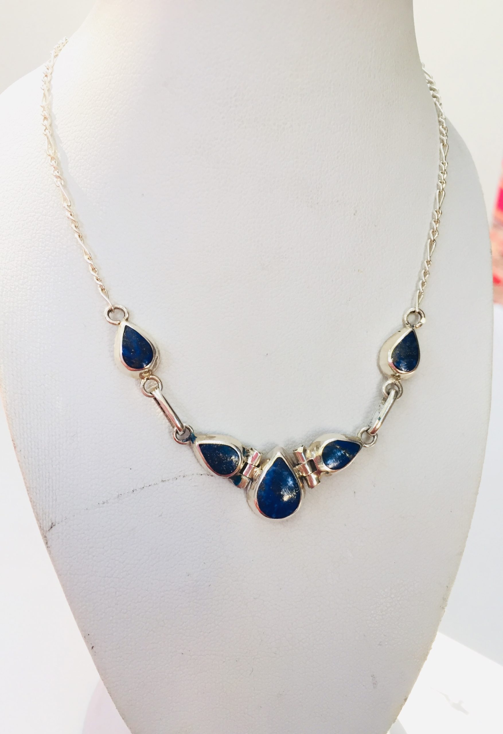 14K GOLDFILLED LAPISLAZULI NECKLACE WITH OVAL BIG AND SMALL FACETATED SHAPES SEPARATEDD WITH 14K GOLDFILLES DIVIDERS