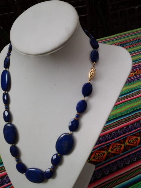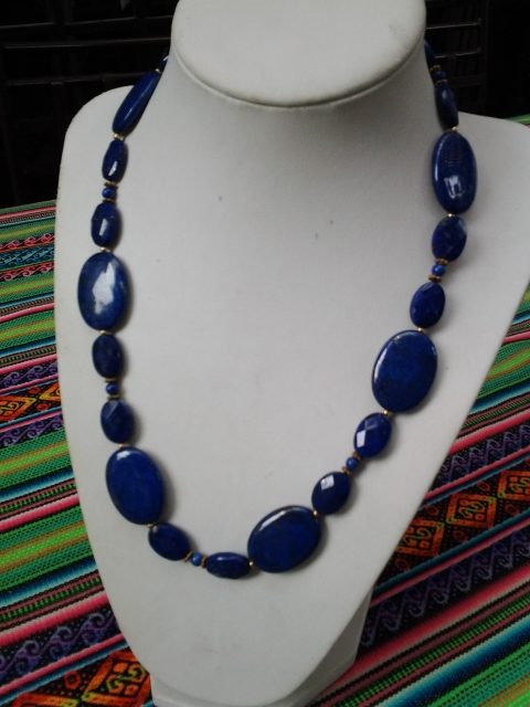 COLLAR LAPISLAZULI EN FORMAS OVALADAS GRANDES Y PEQUEÑOS FACETADOS CON PIEZAS DE 14KGOLDFILLED ENTRE MEDIO