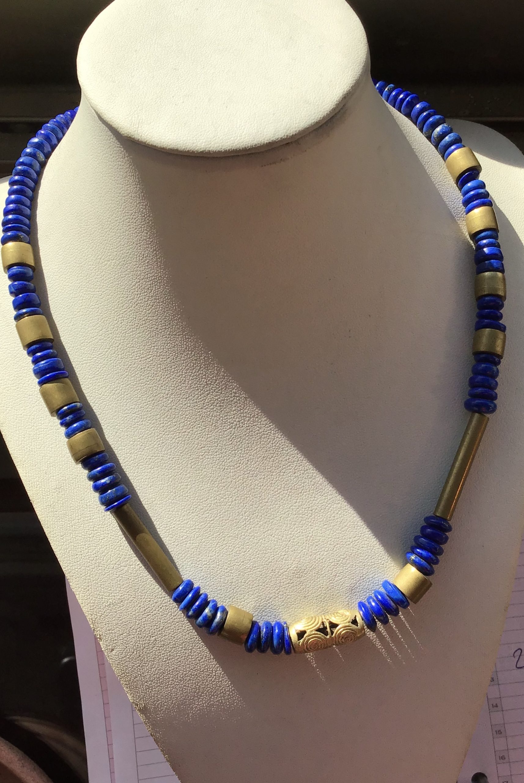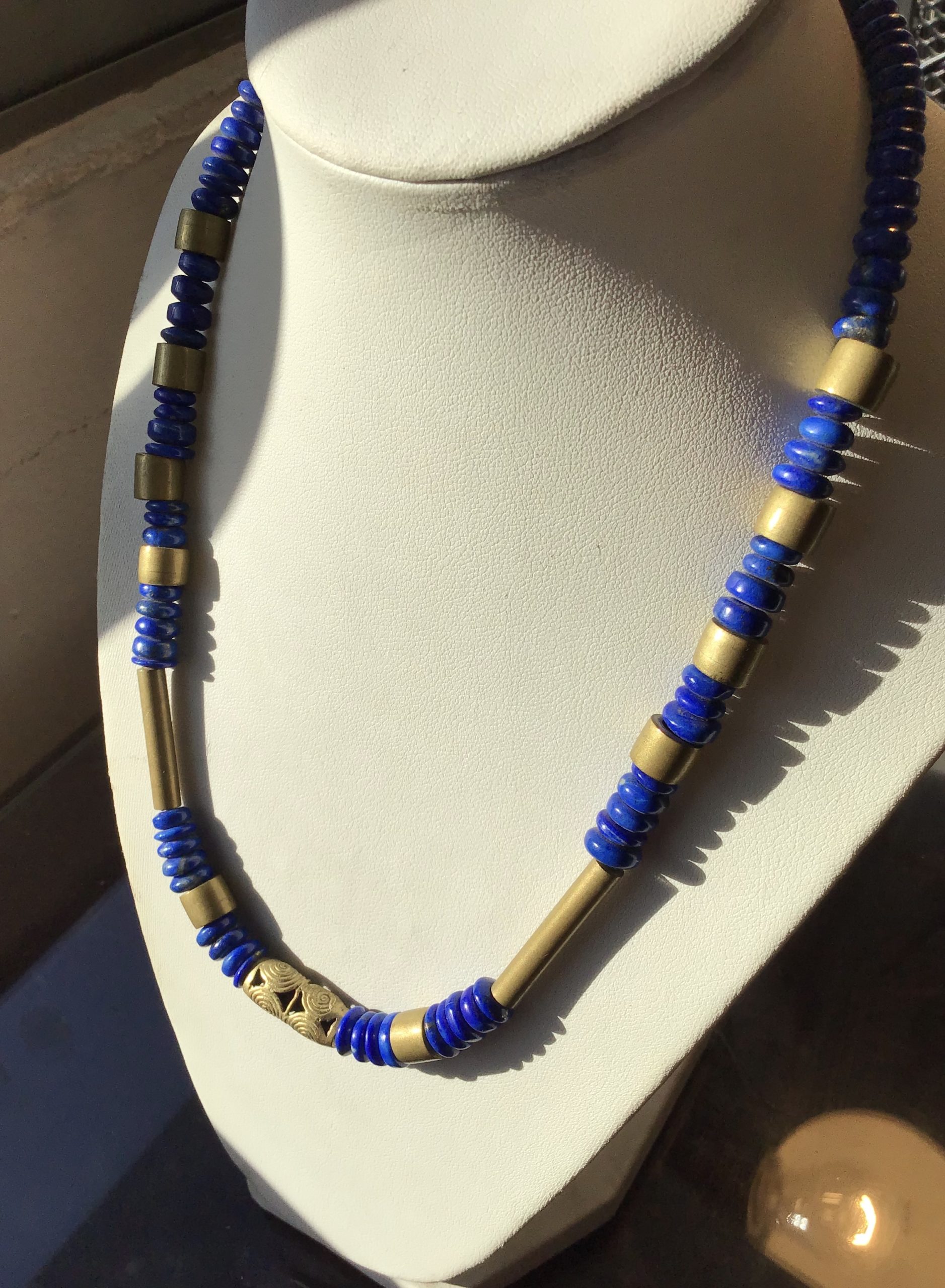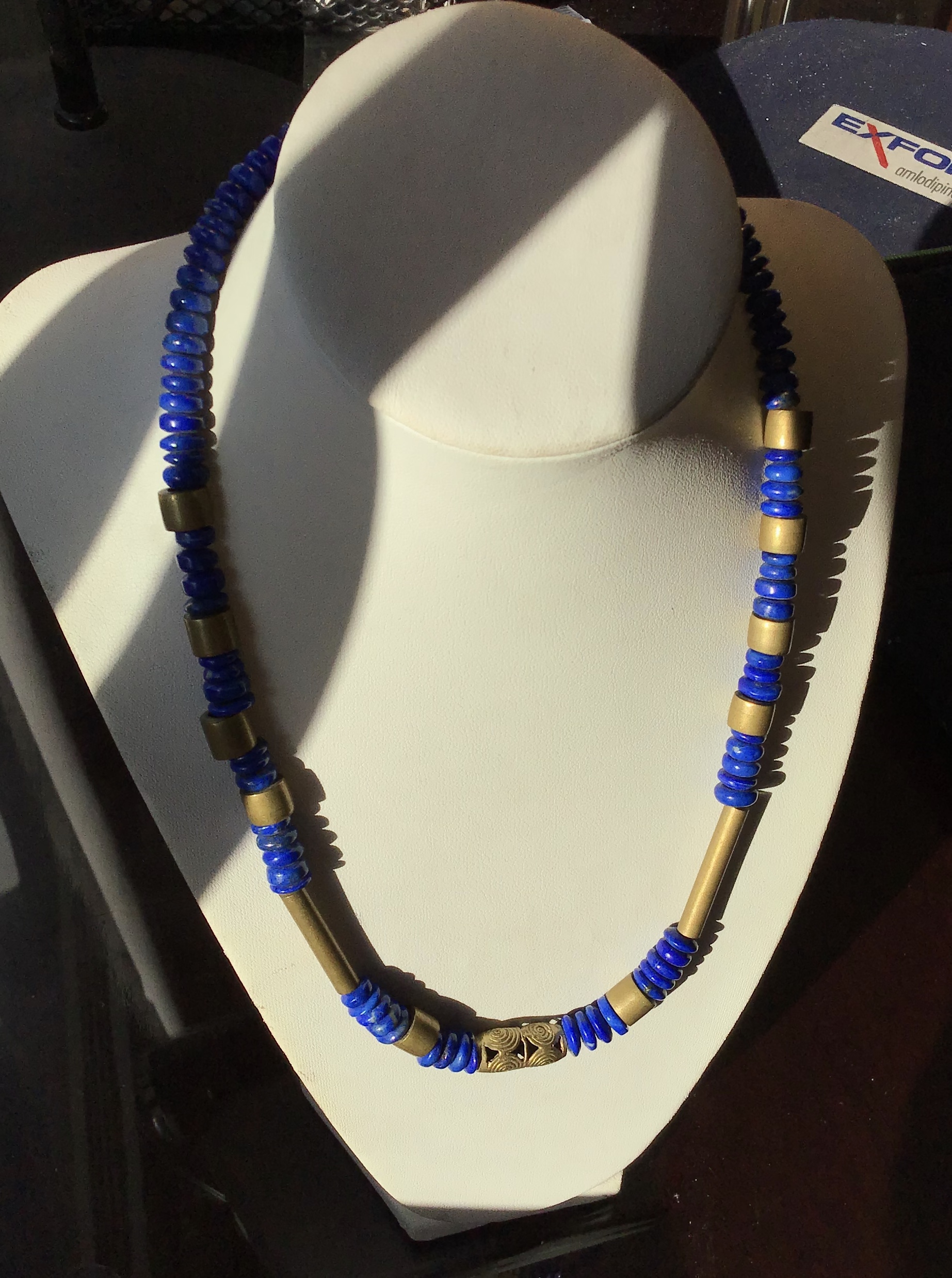 COLLAR LAPISLÁZULI CON PIEZAS DE BRONCE OPACO LAPISLÁZULI NECKLACE WITH OPAQUE BRONZE PIECES