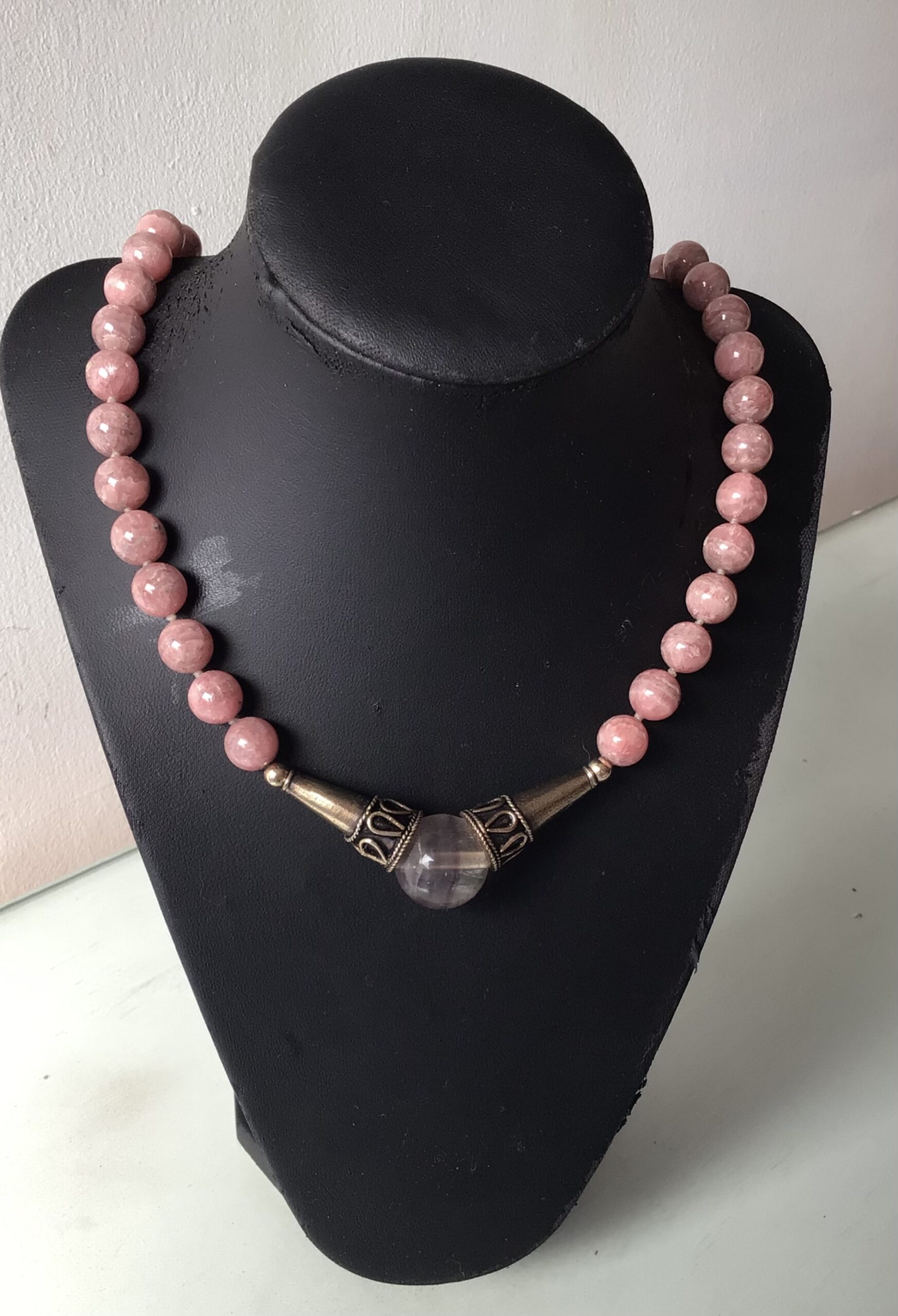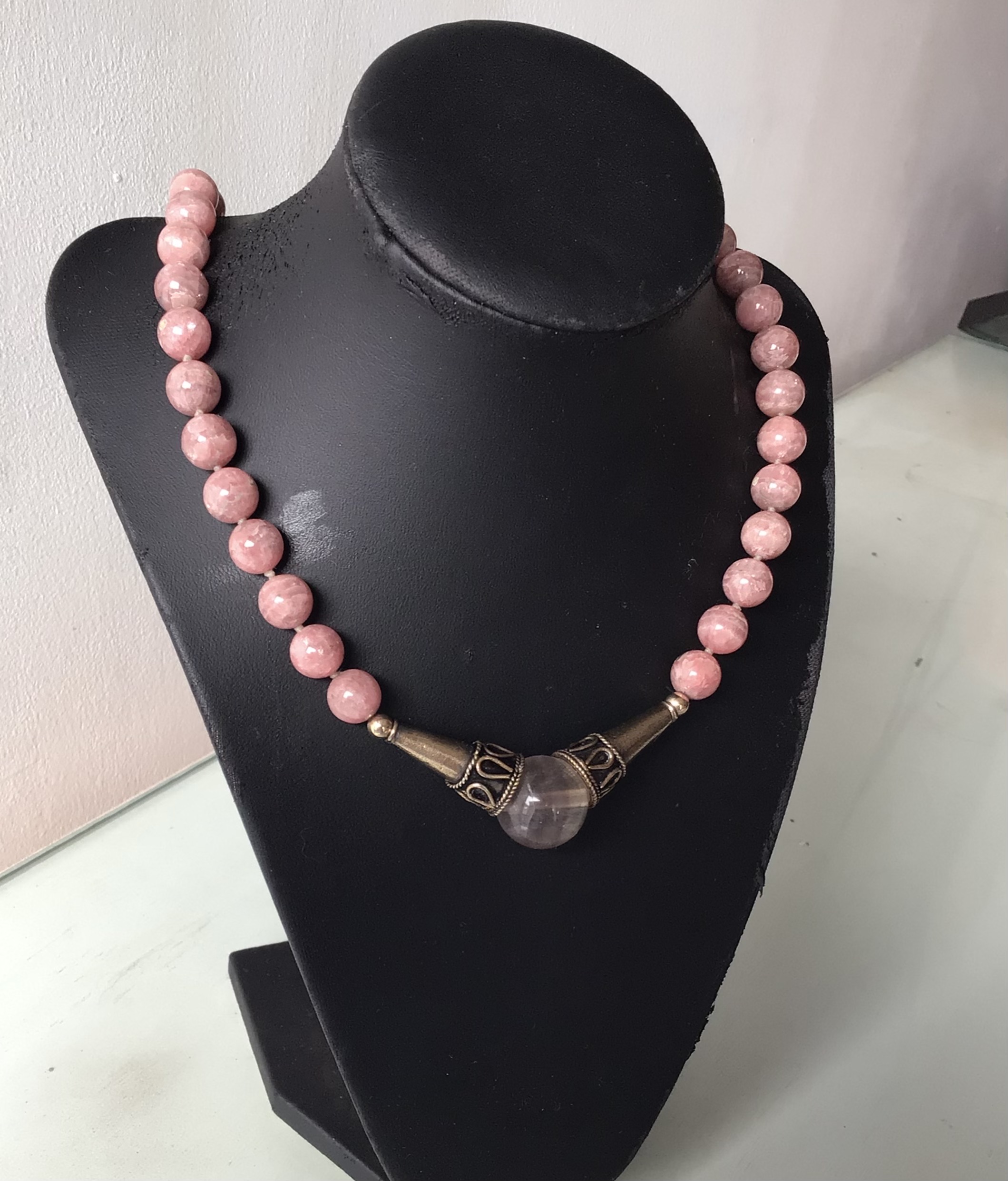 Collar rodocrosita con bronce y tourmaline frontal bola 10ml