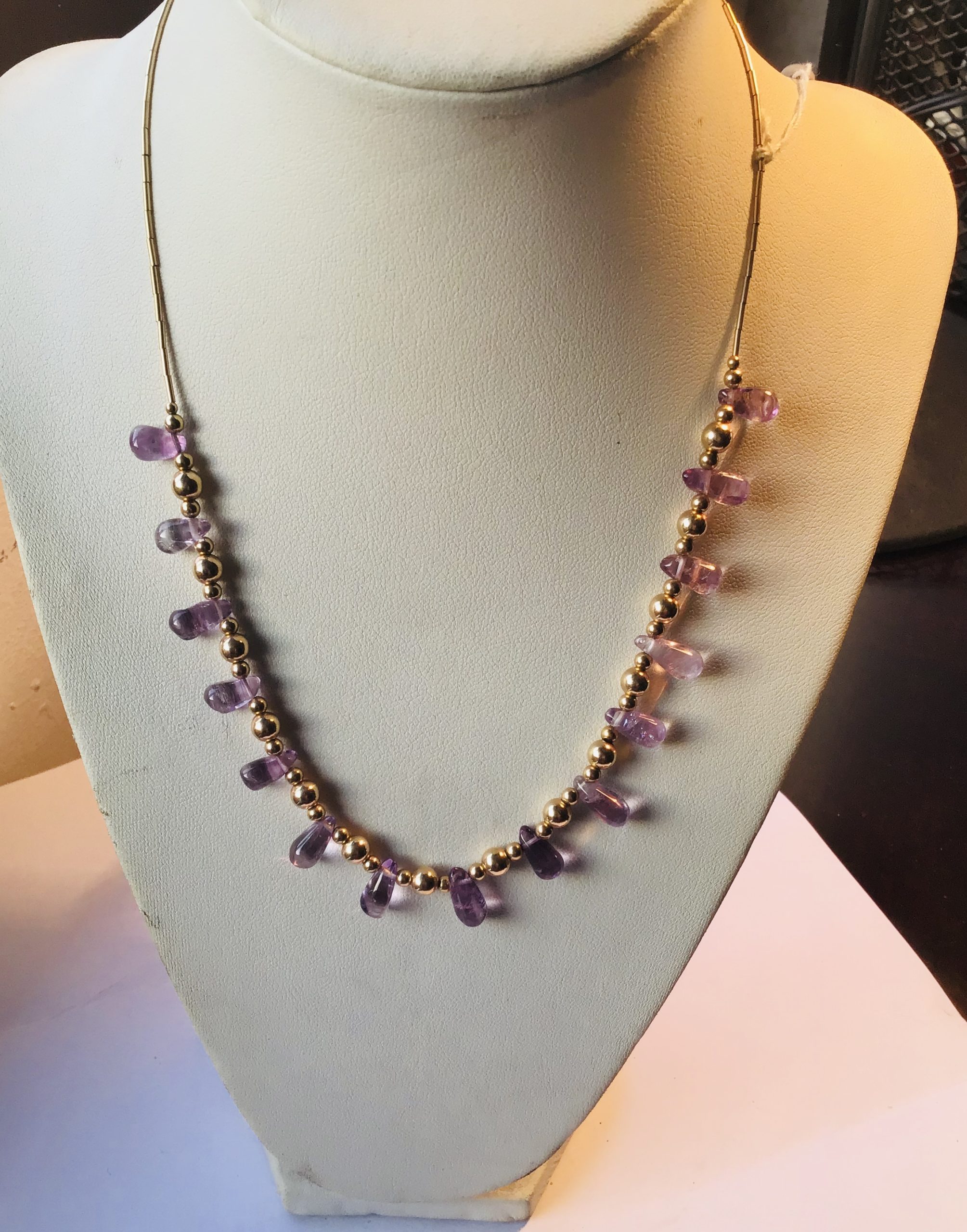 COLLAR AMATISTA EN FORMA DE LÁGRIMAS CON 14k GOLDFILLED 14K GOLDFILLED NECKLACE WITH AMATHISTS IN DROP SHAPE