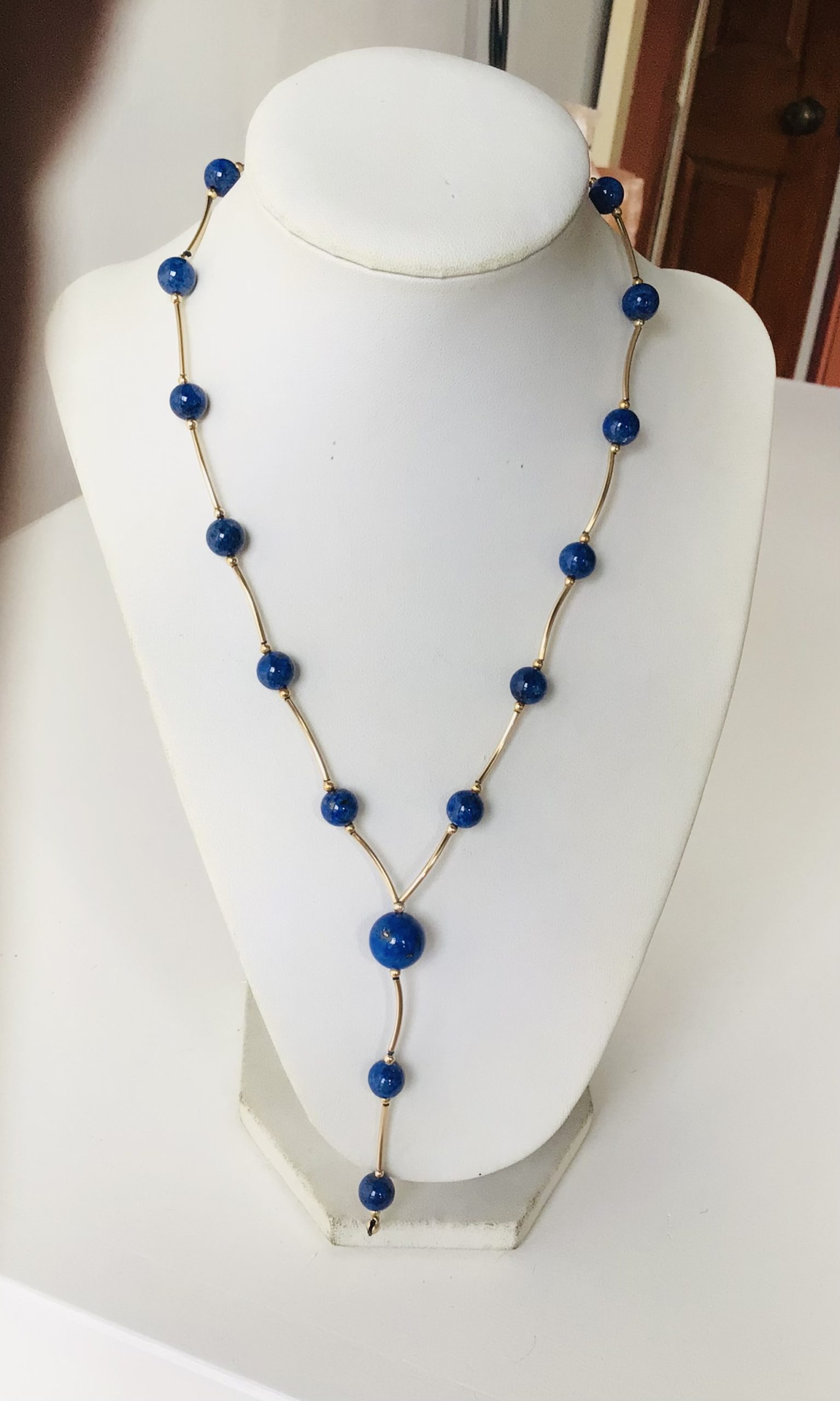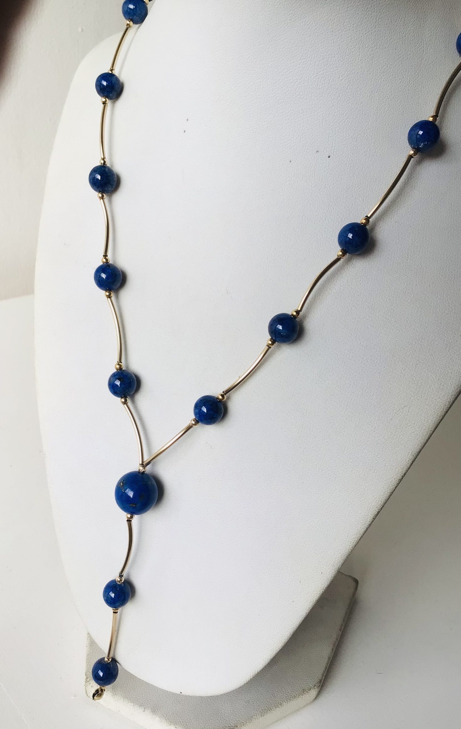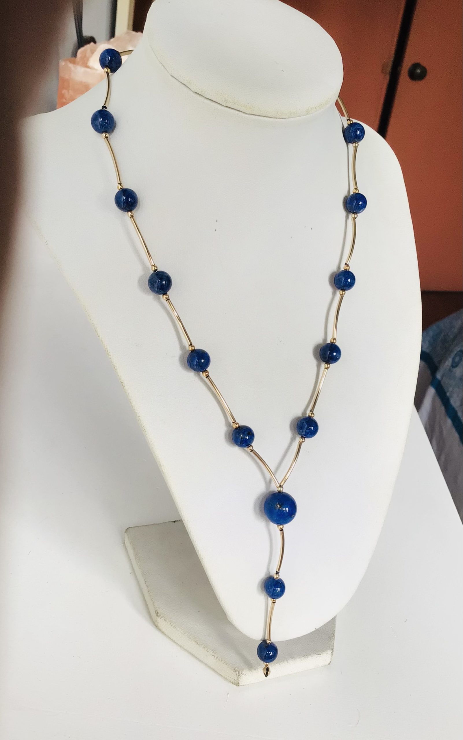 Collar lapislázuli goldfilled con tubos curvos ( bola 8, 10 ml)