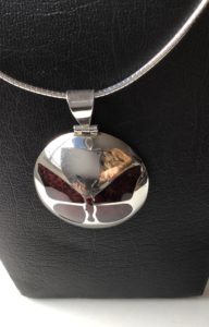 SILVER ROUND PENDANT WITH JASPER BUTTERFLY
