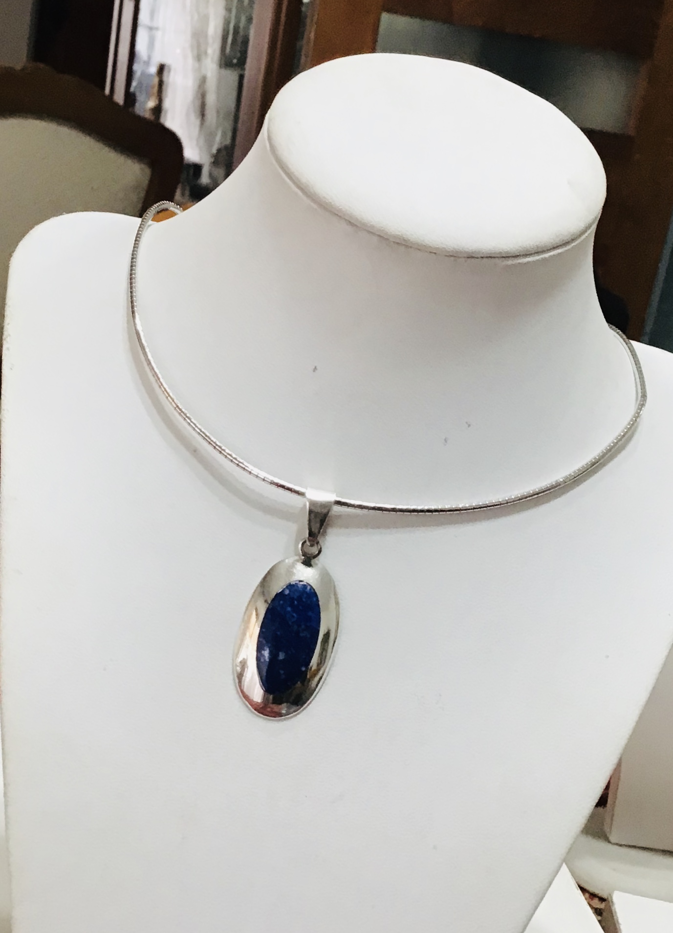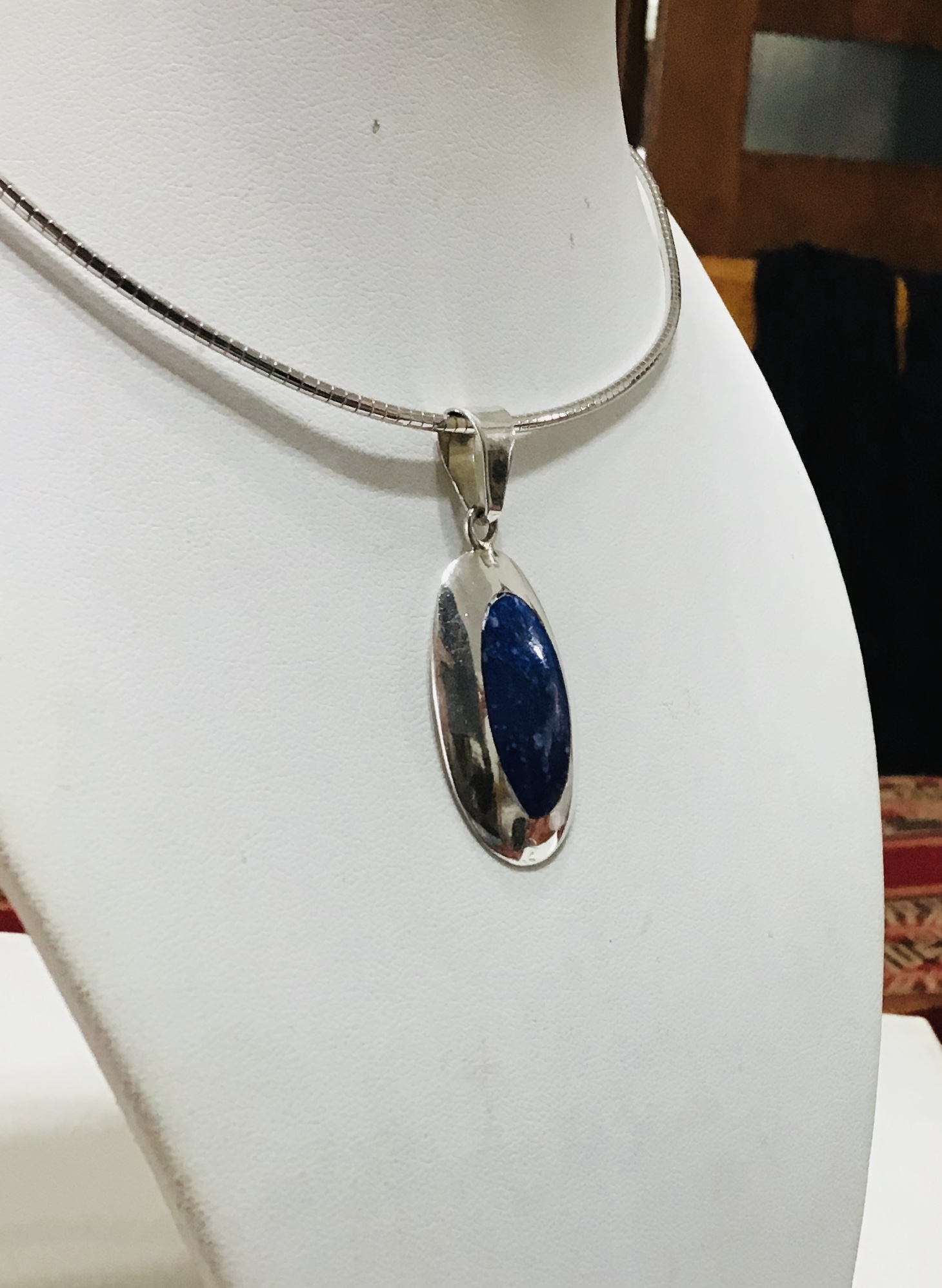 COLGANTE PLATA LAPISLÁZULI OVAL ,HECHO A MANO