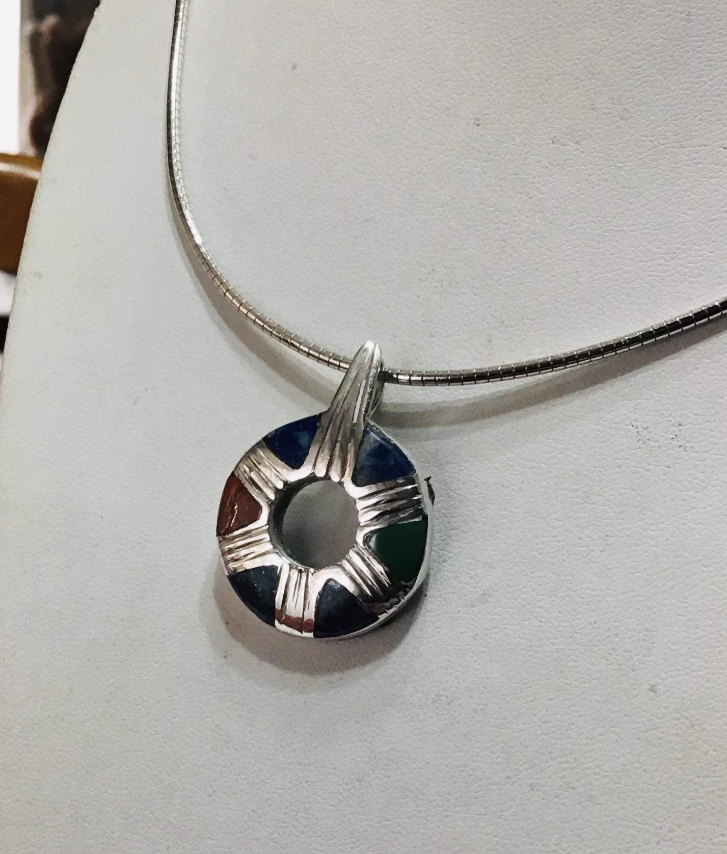 SILVER MULTICOLOUR PENDANT ( lapislázuli,malaquite, jasper)