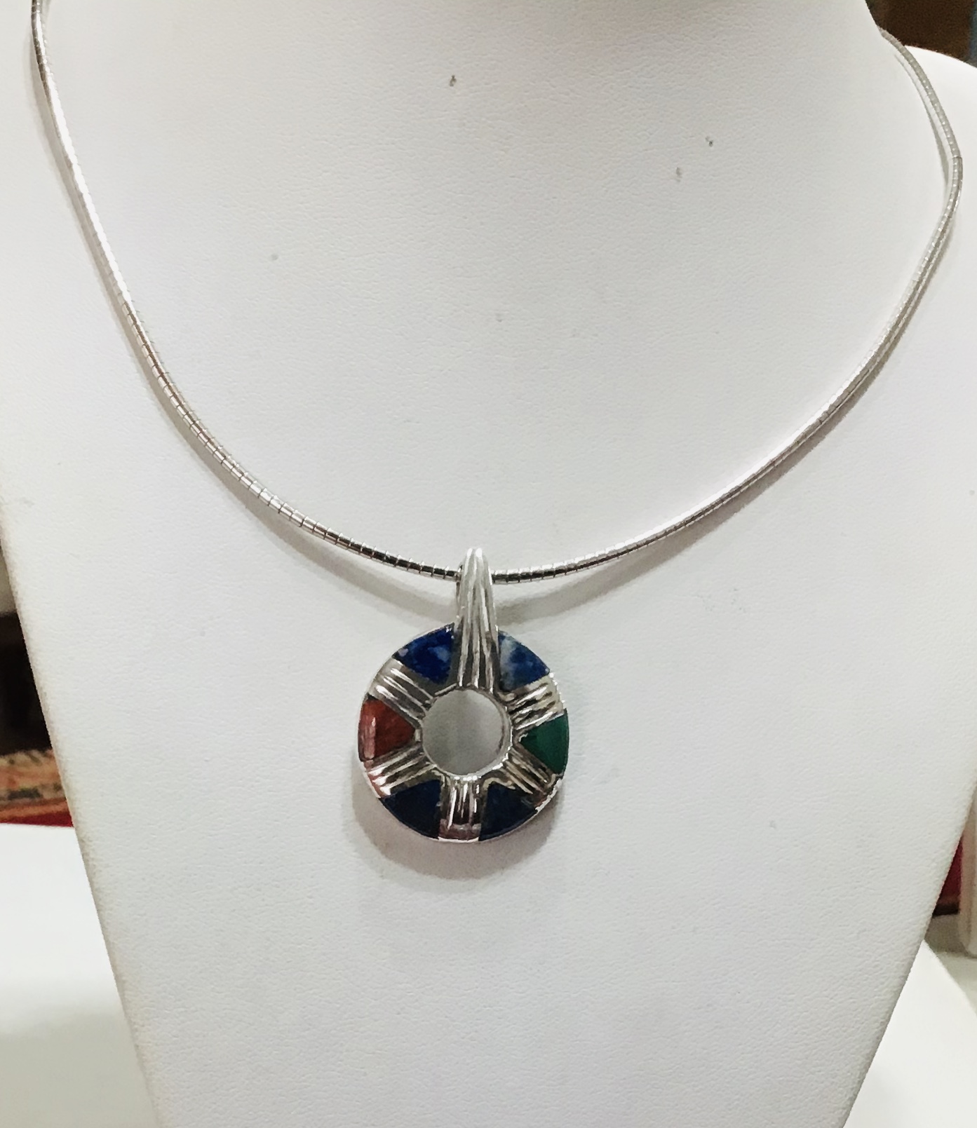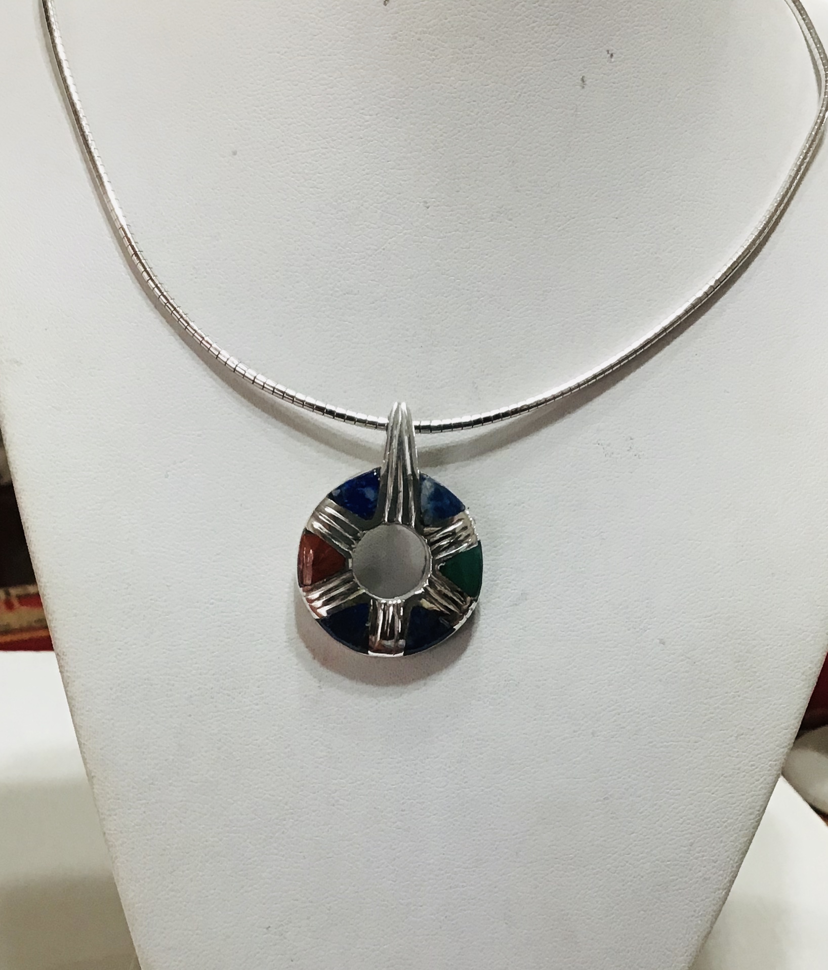 COLGANTE PLATA MULTICOLOR ( lapislázuli, malaquita y jaspe)