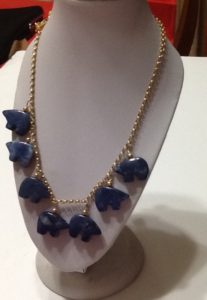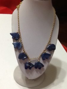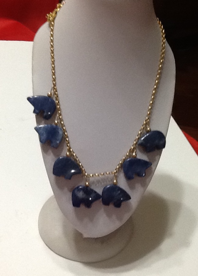COLLAR ORO SÓLIDO 14K OSOS COLGANTES DE LAPISLAZULI , HECHO A MANO