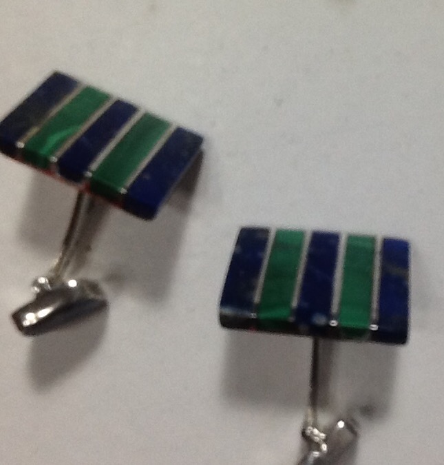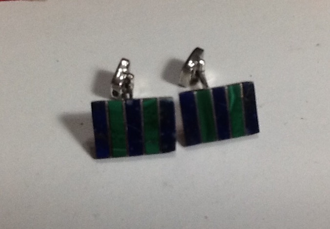 SILVER LAPISLAZULI AND MALAQUITE CUFFLINKS , WITH STONE IN THE BACK . HAND MADE