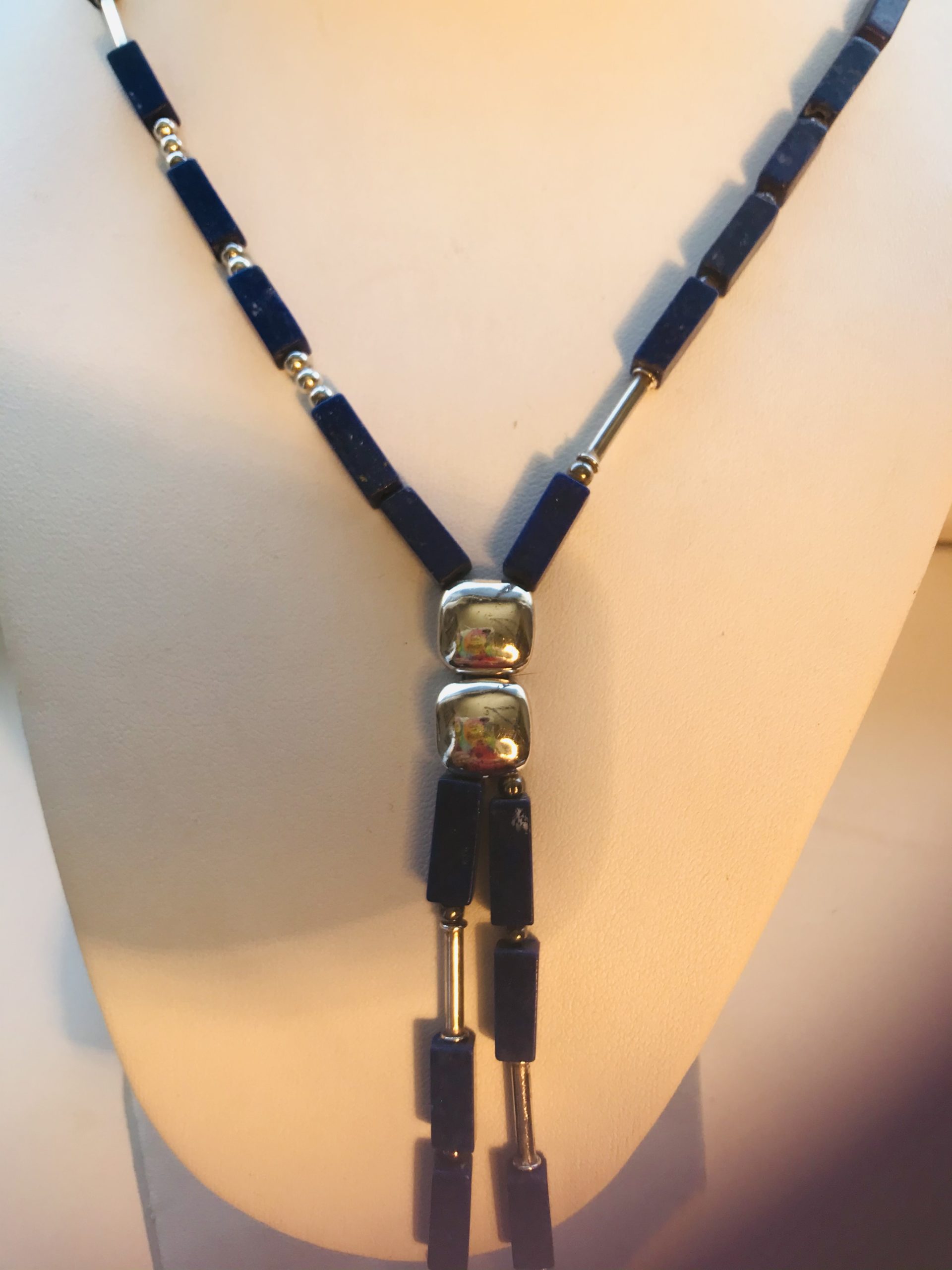 Collar plata lapislázuli largo con piezas de plata frontales Silver lapislázuli necklace, long with silver front pieces