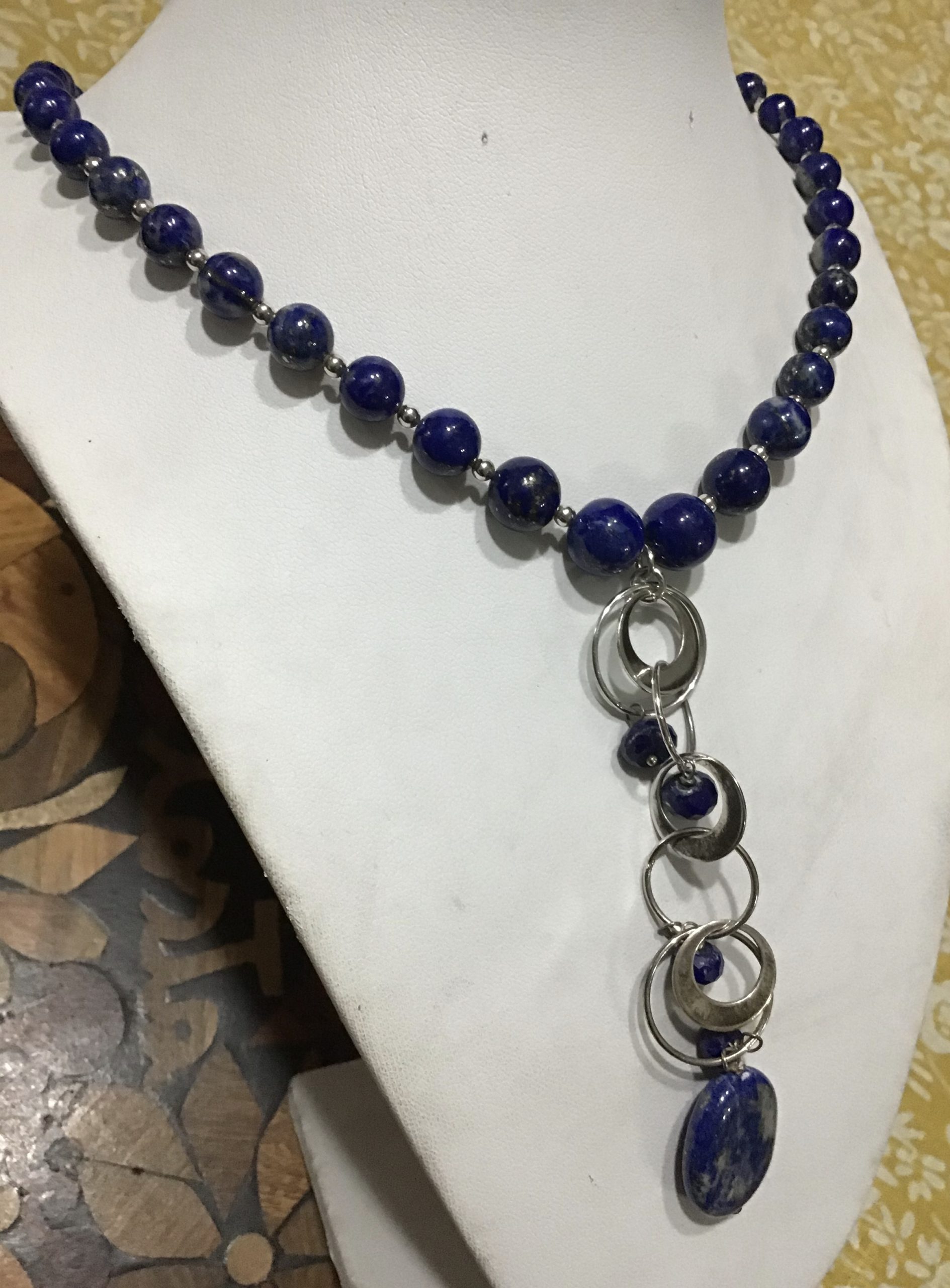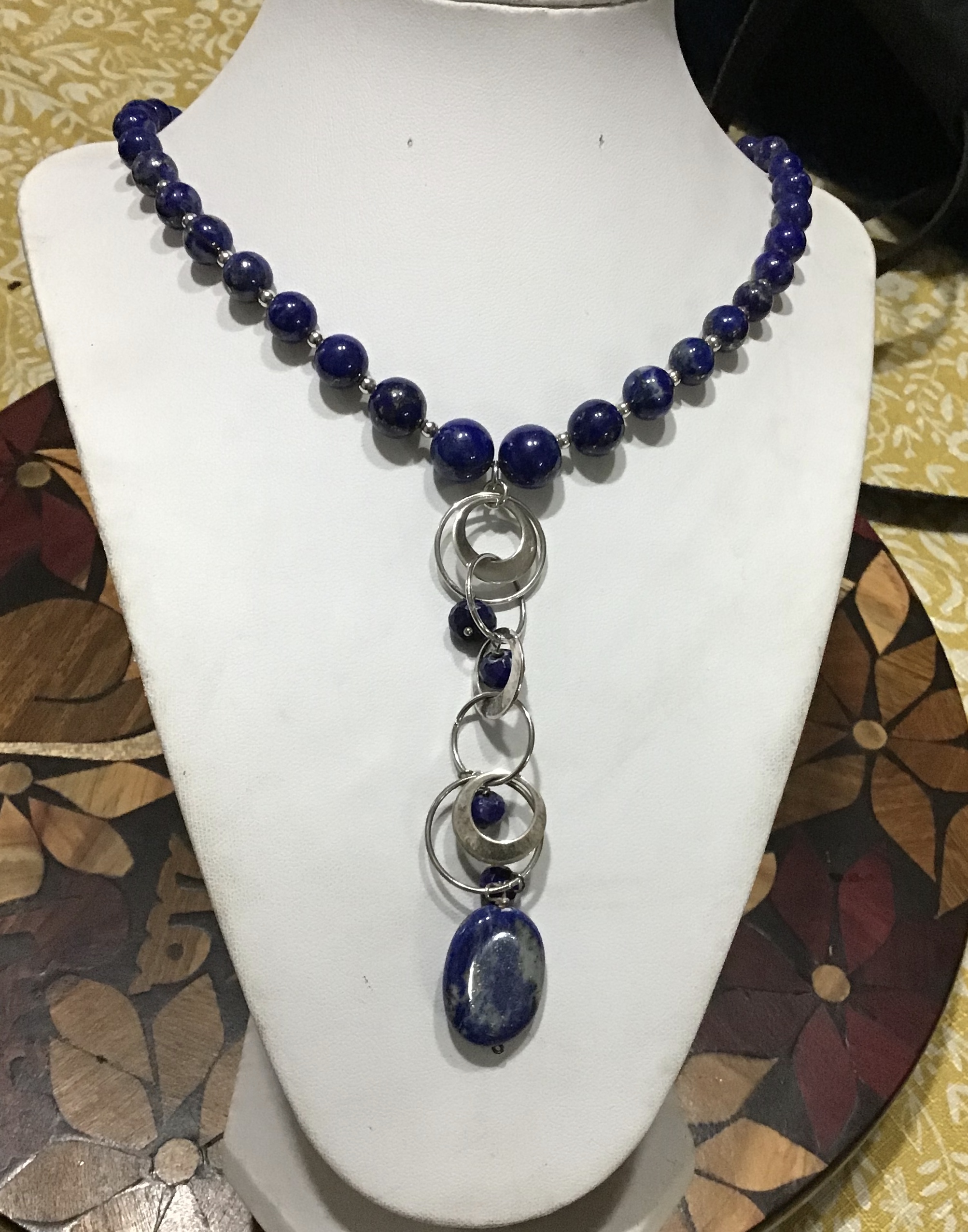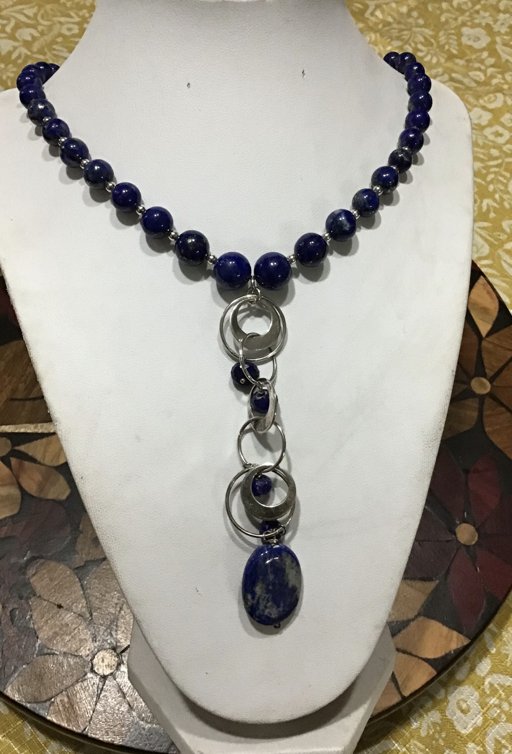 COLLAR BOLA 8m LAPISLÁZULI CON CUELGA FRONTAL EN PLATA Y PIEZA EN LAPISLÁZULI 8mm LAPISLÁZULI NECKLACE WITH SILVER HUNGING PIECE UPFROBT