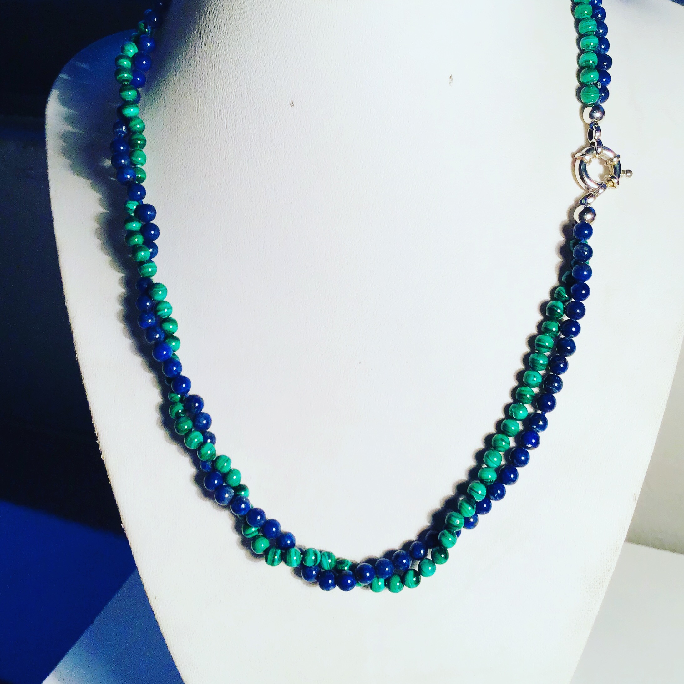 Collar Plata lapislázuli y malaquita