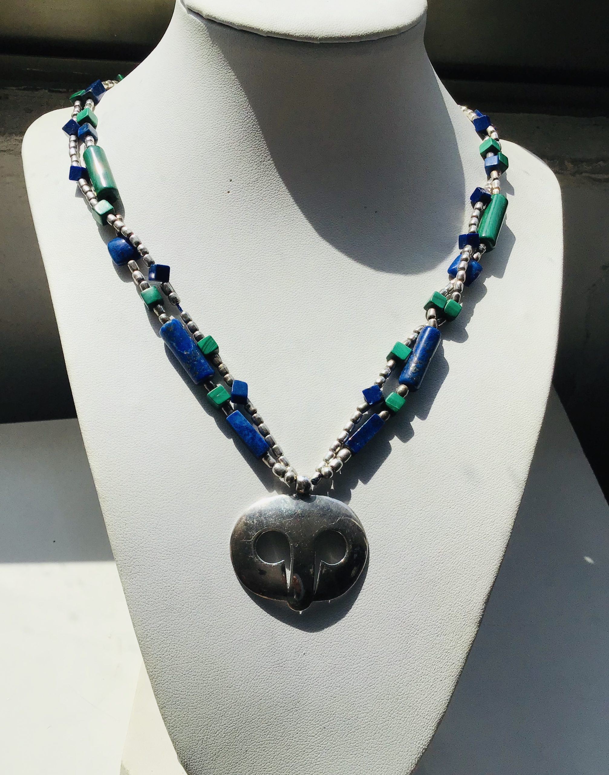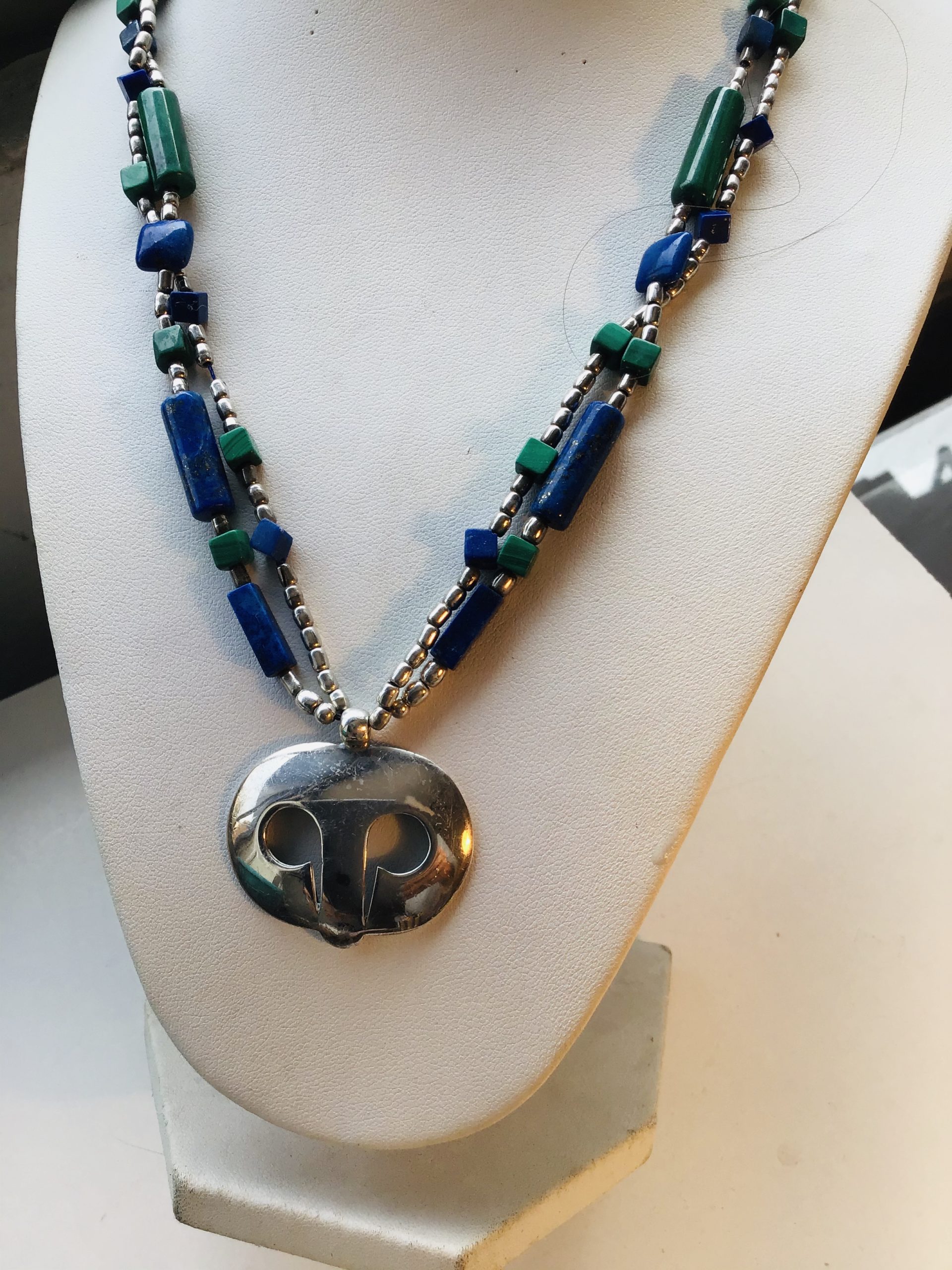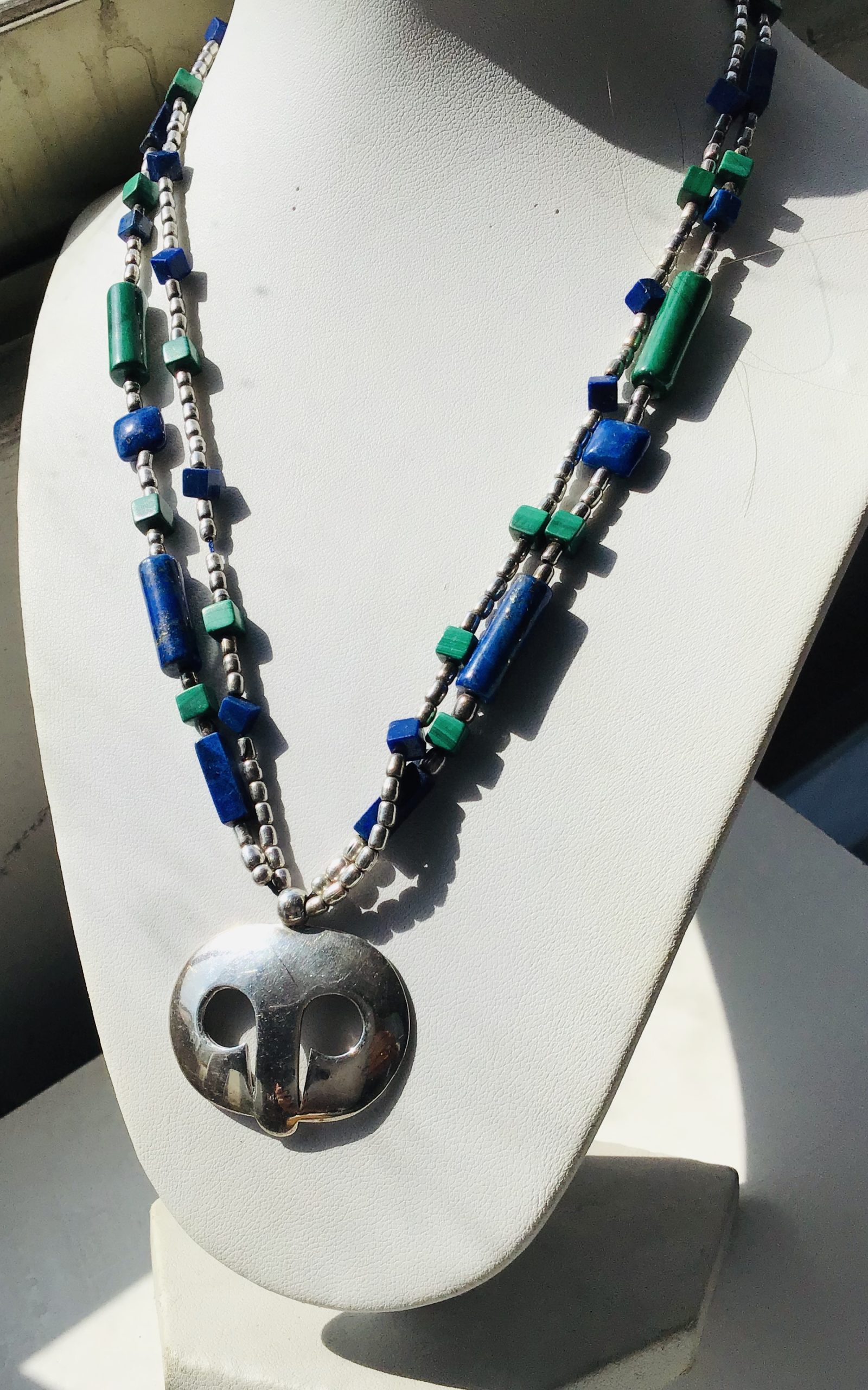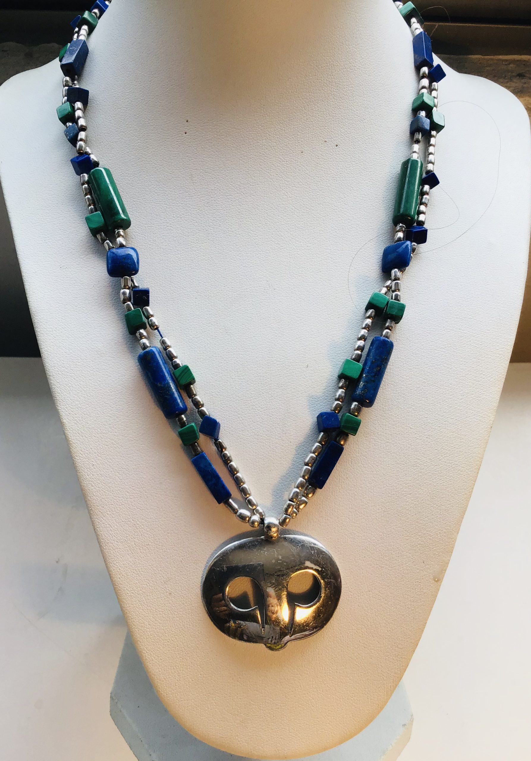 Collar Plata doble lapislázuli y malaquite con colgante de Plata Silver necklace WITH lapislázuli and malaquite WITH Silver pendant