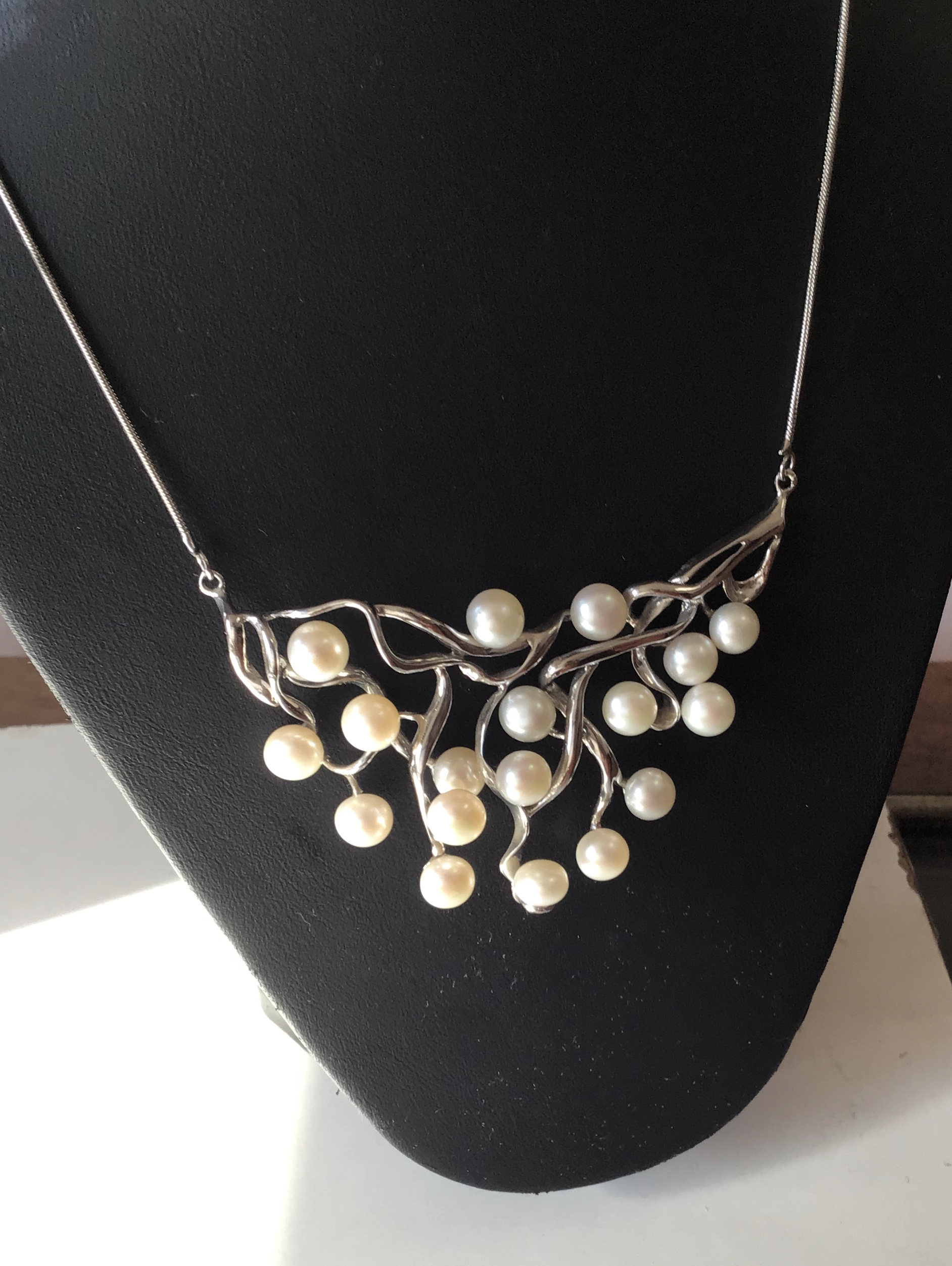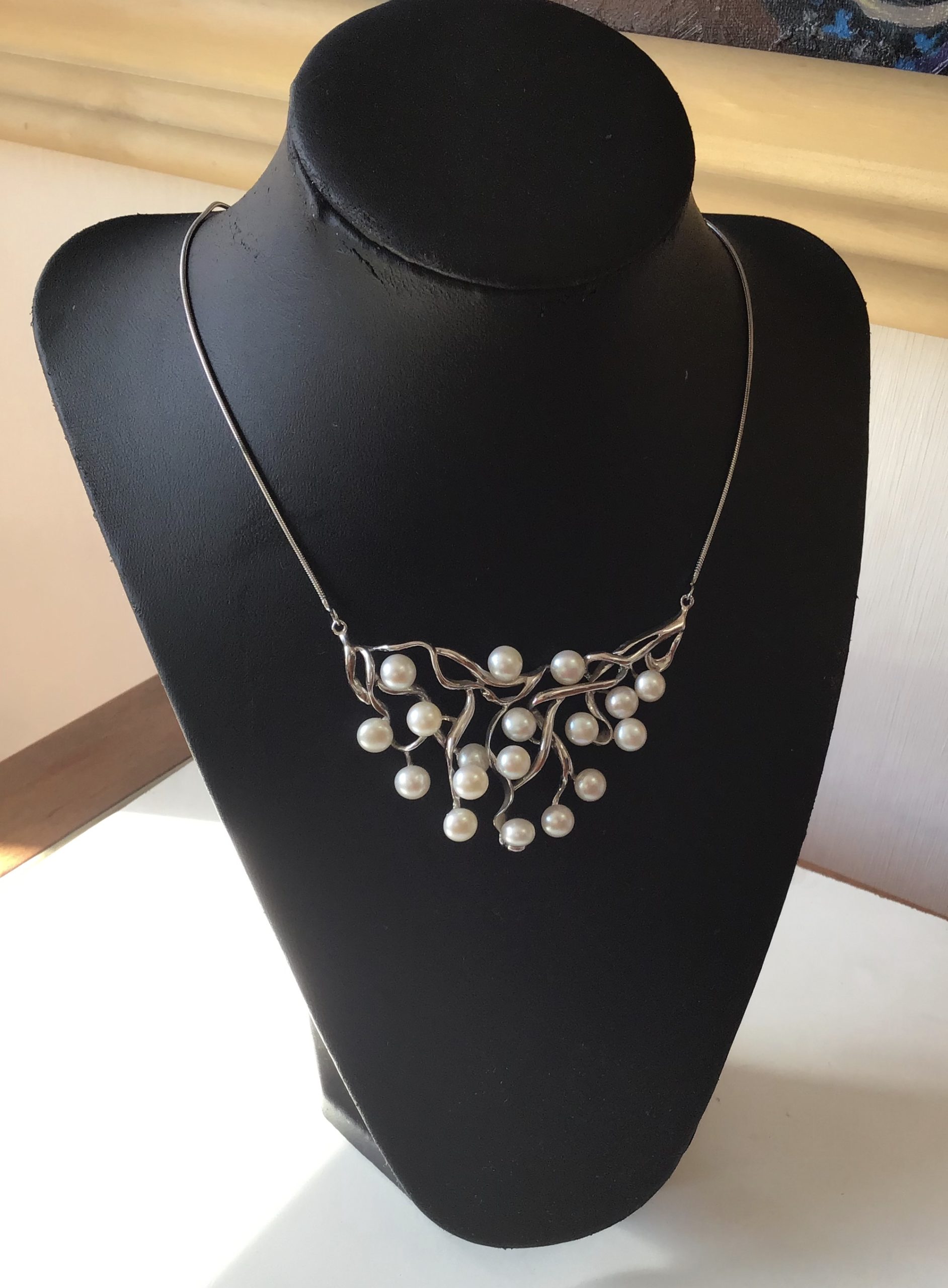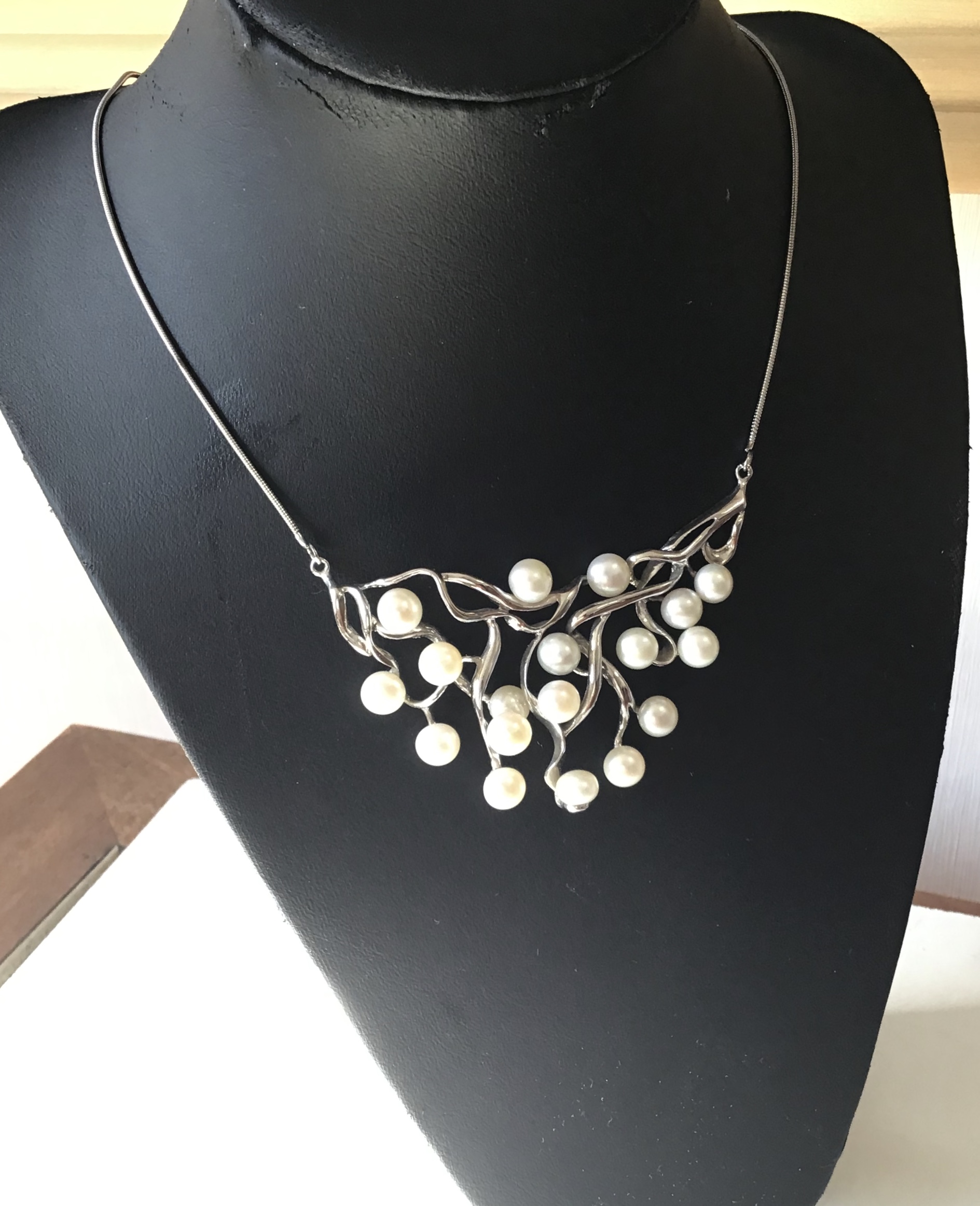 COLLAR PLATA RODINADA CON PERLAS NATURALES SIVER NECKLACE WITH NATURAL PEARLS