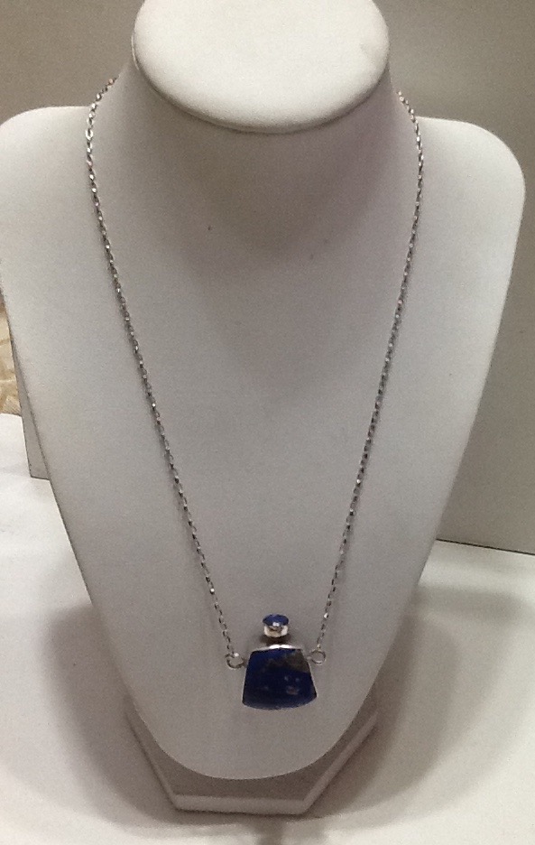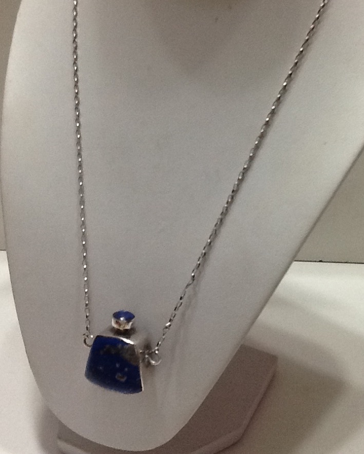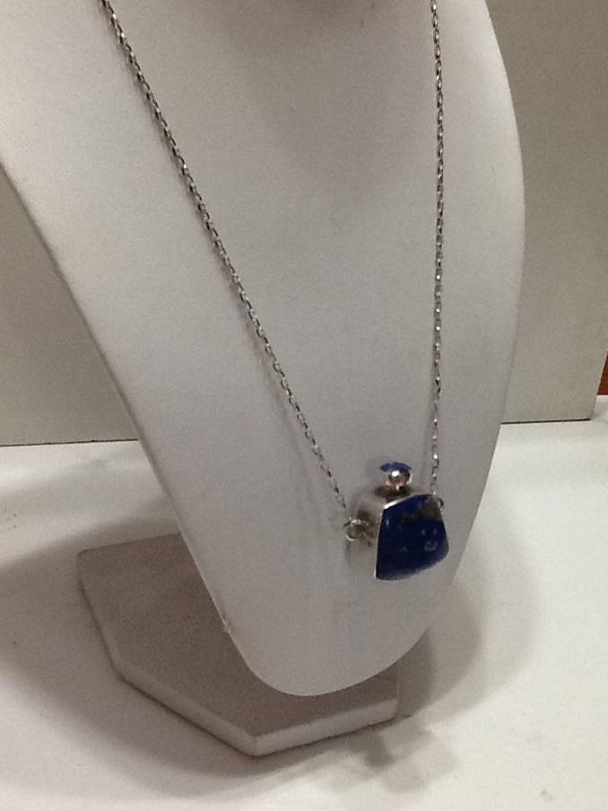 SILVER CHAIN WITH PERFUME BOTTLE IN SILVER WITH LAPISLAZULI , HAND MADE