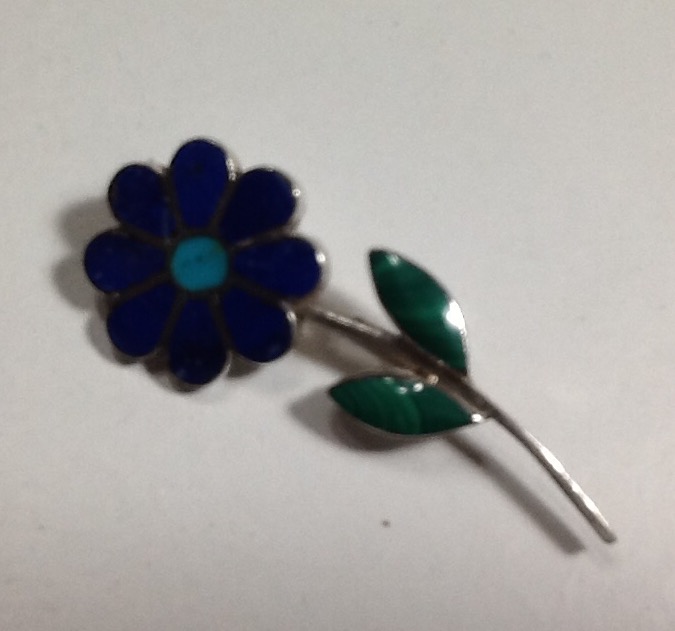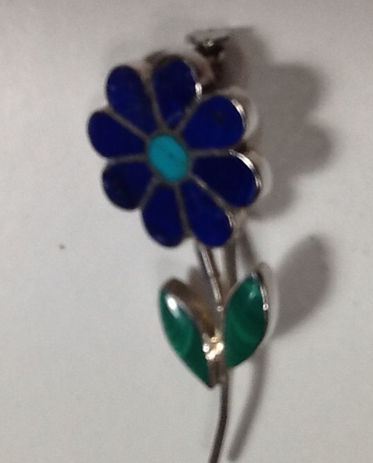 Silver pin with semiprecious stones ( LAPISLAZULI , malaquite, turquoise) hand made