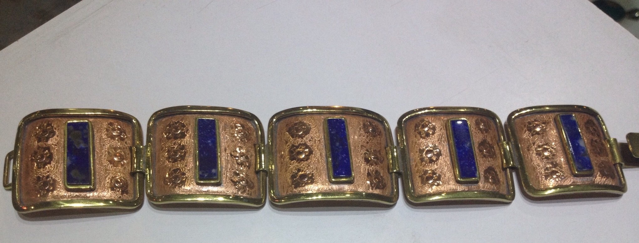 Handmade Copper Bronce and LApislazuli Bracelet, handmade