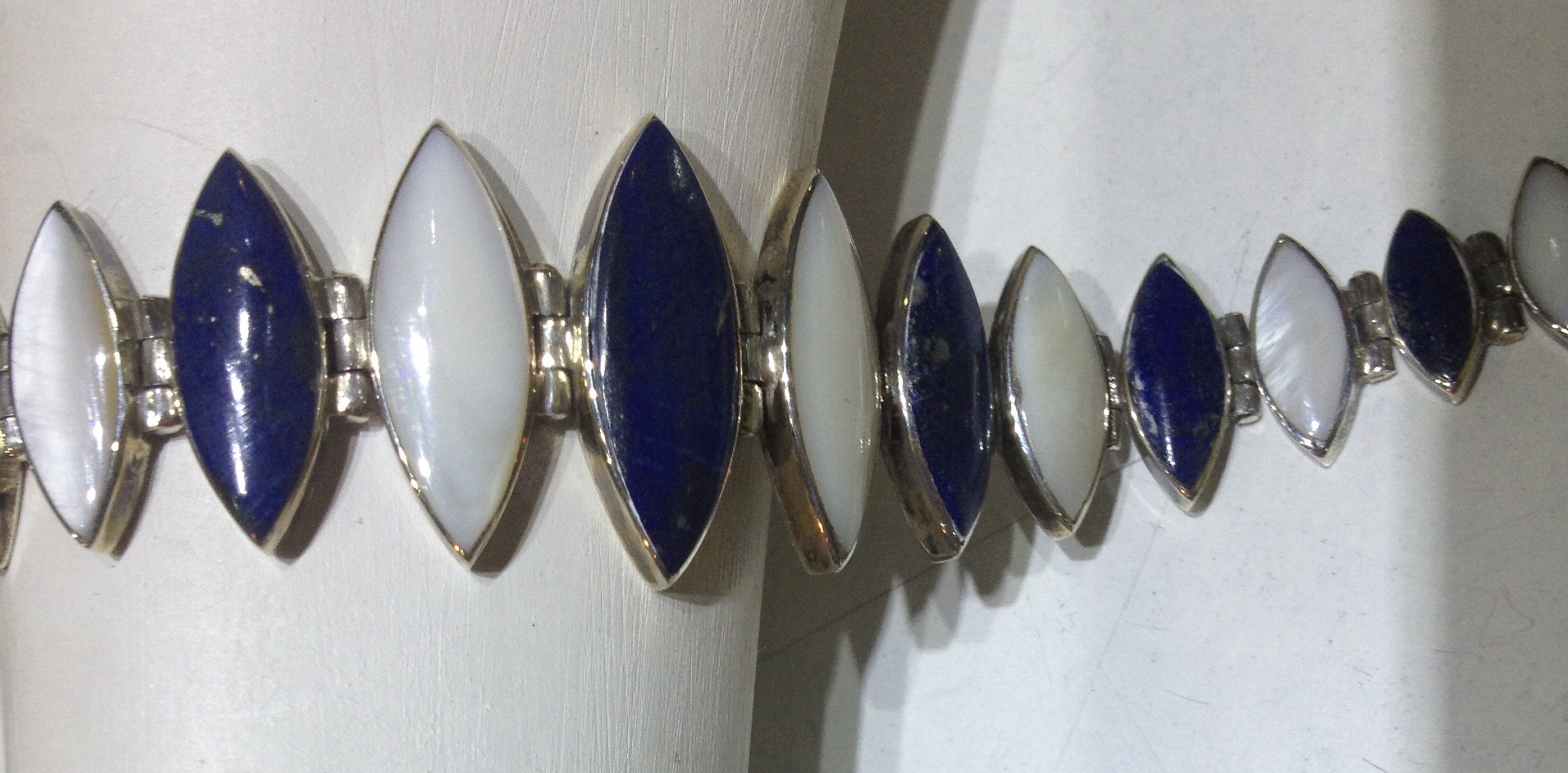 Pulsera plata bisagra lapislázuli con nacar, hecha a mano. Silver bracelet with Lapislázuli and Mother of Pearl, handmade.