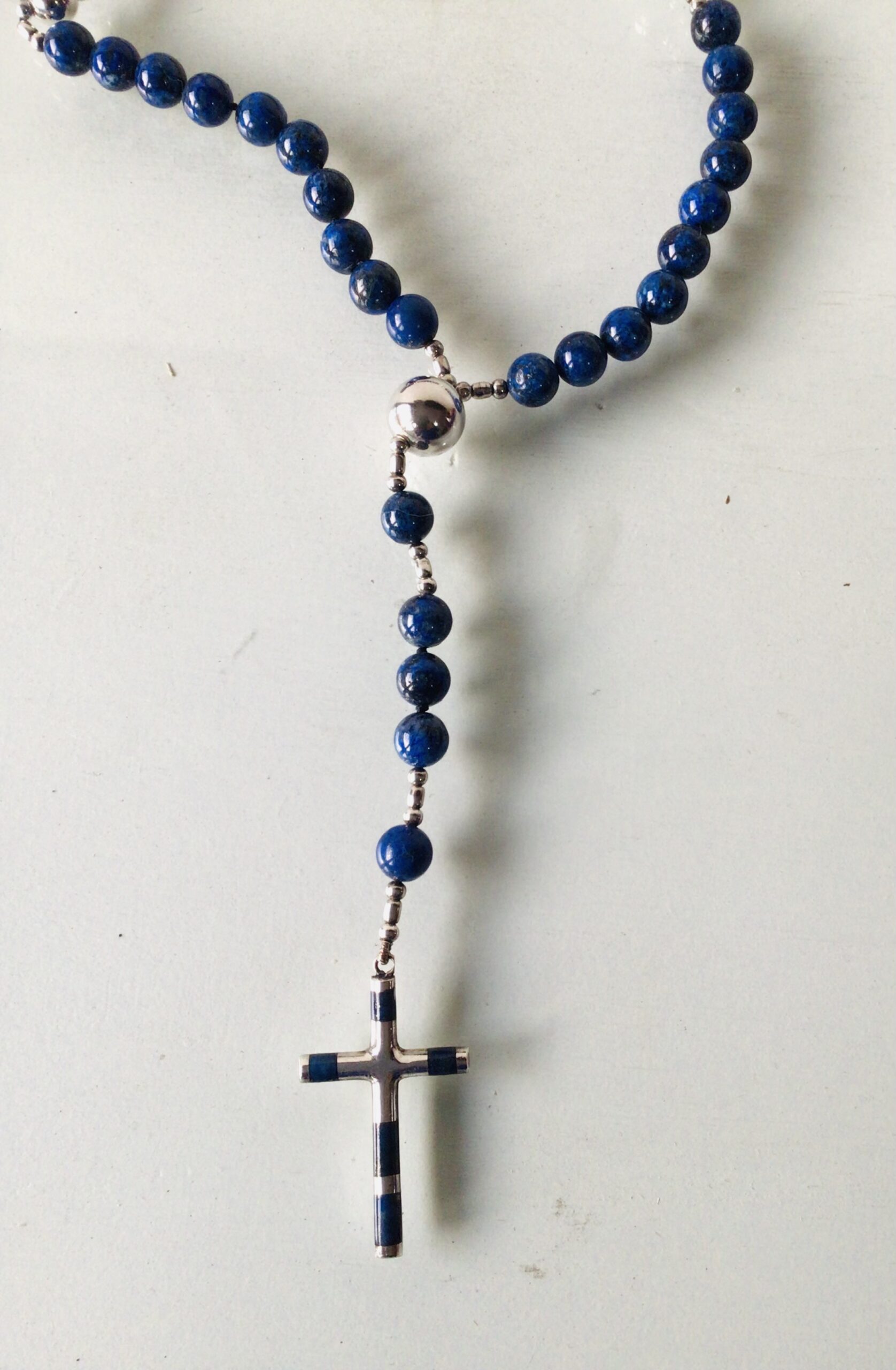 Rosario lapislázuli 8 ml con bolas y cruz de Plata Lapislázuli 8 ml rosary WITH Silver Beats and cross