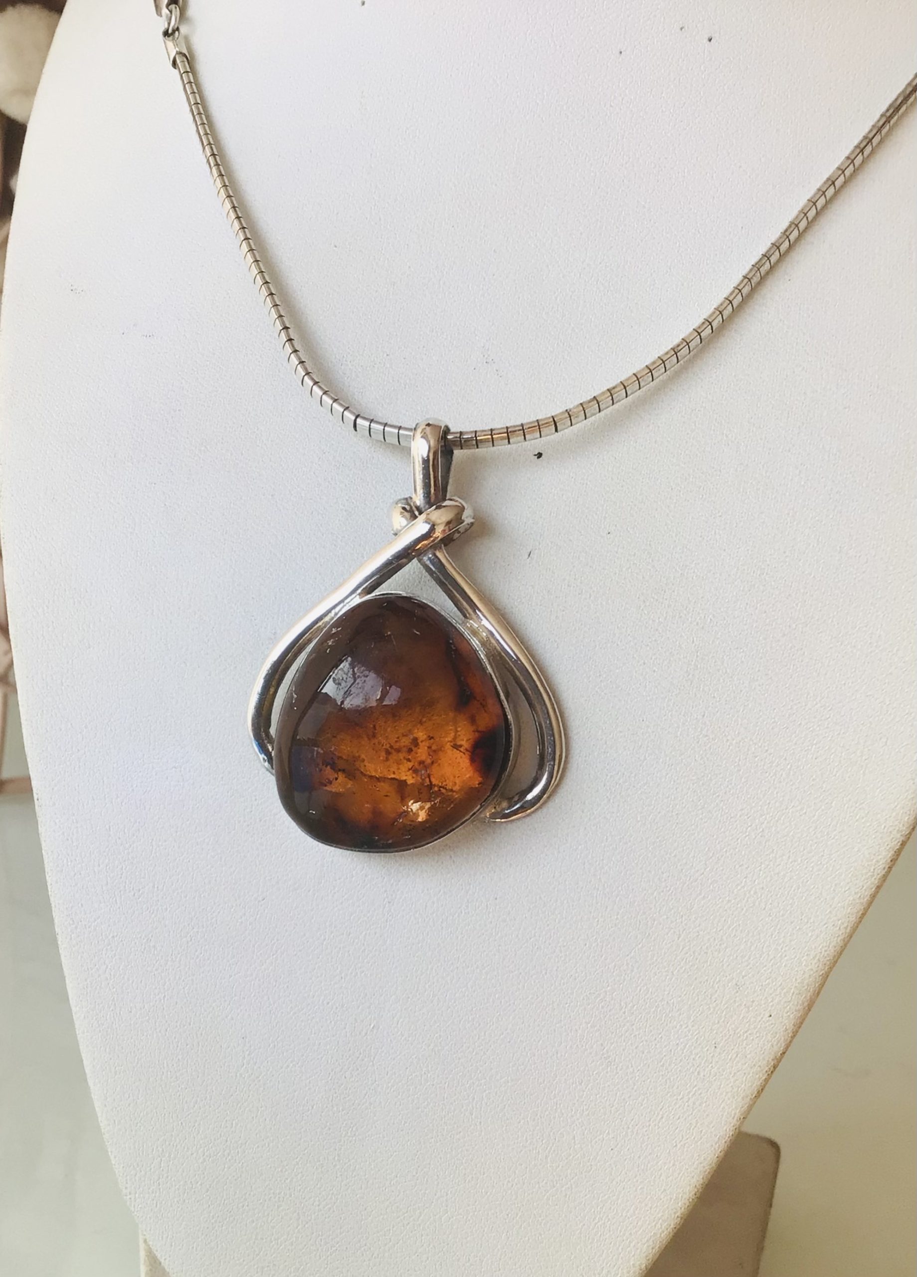 Colgante Plata ambar natural . Silver amber pendant . Hand made
