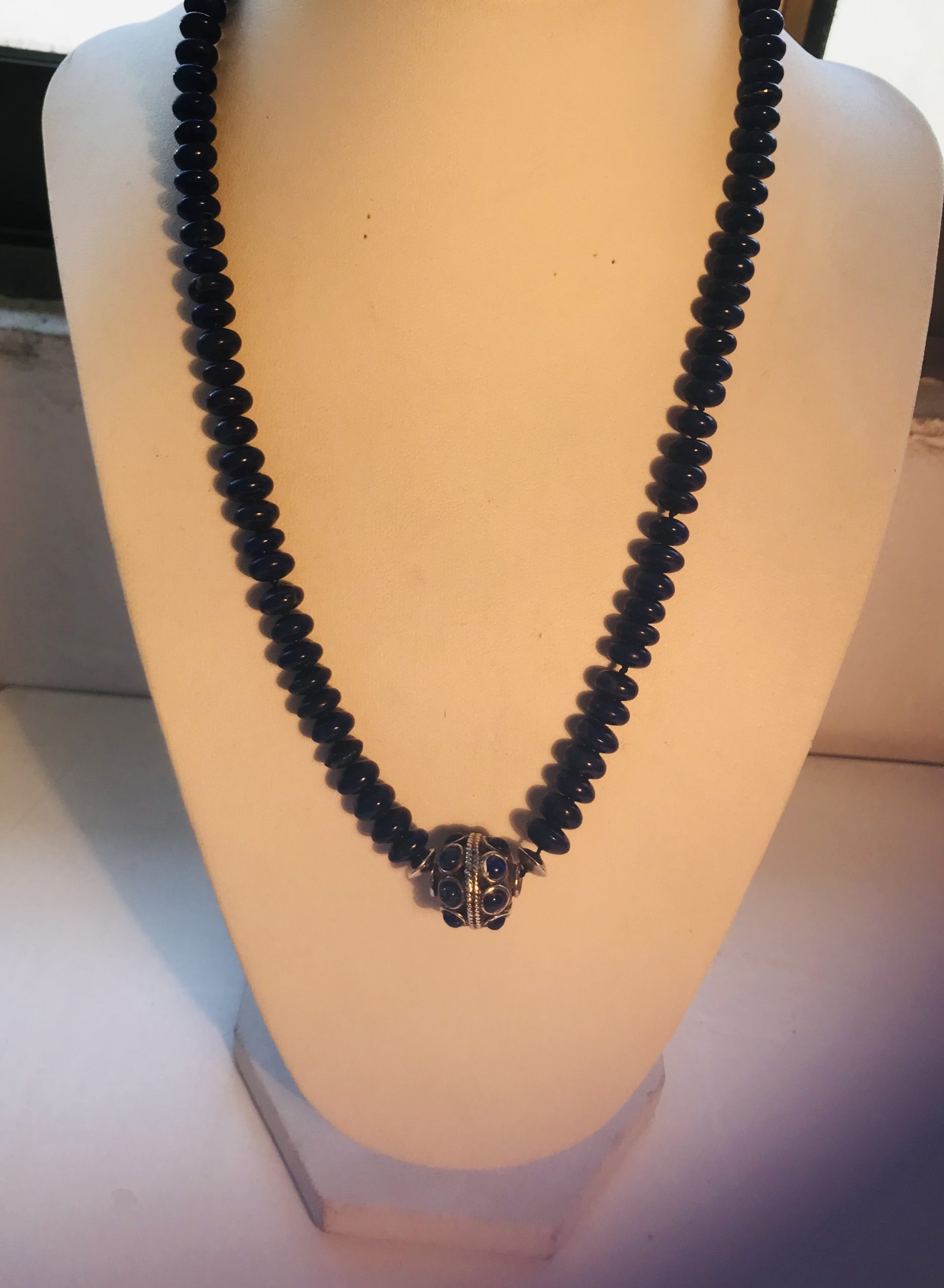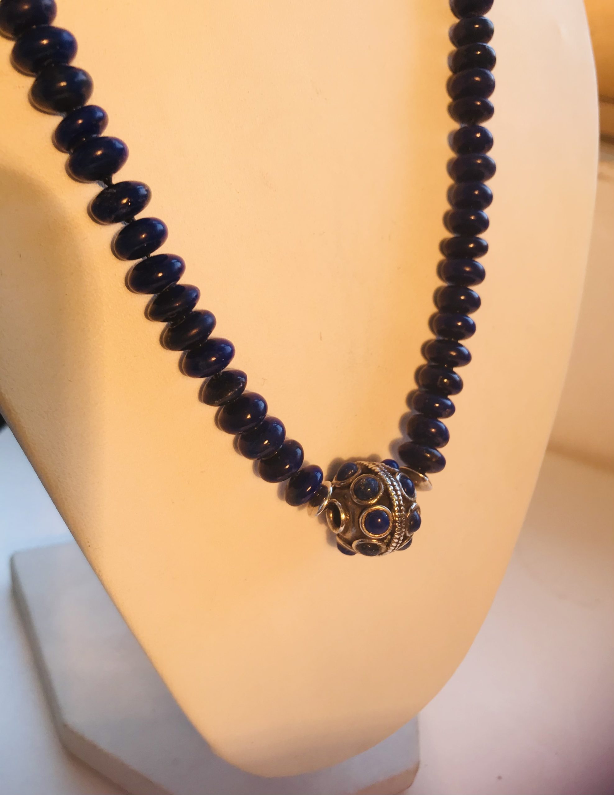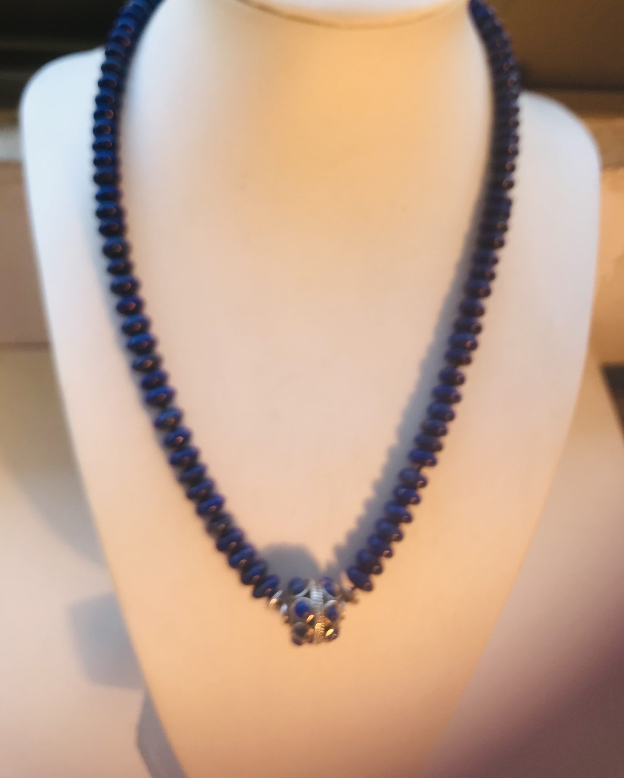 Collar plata lapislázuli en forma de platillo con pieza frontal en plata y lapislázuli Silver lapislázuli necklace in shape of plate with front silver piece with lapislázuli.