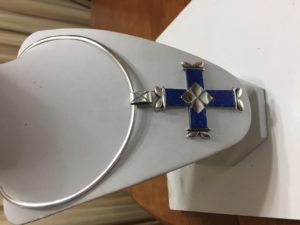 CRUZ GRANDE LAPISLAZULI PLATA 11cm x 7 cm hecho a mano