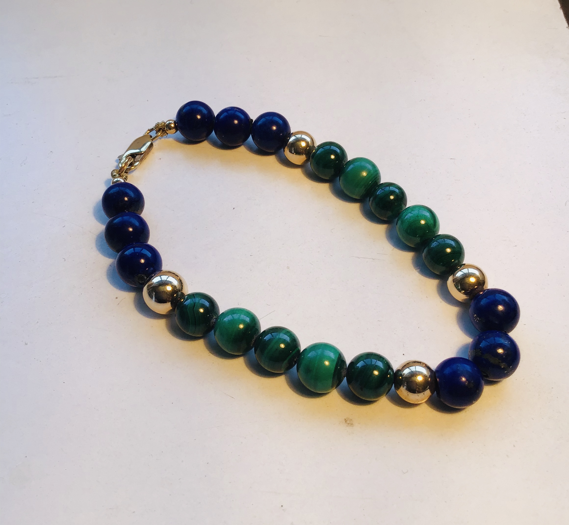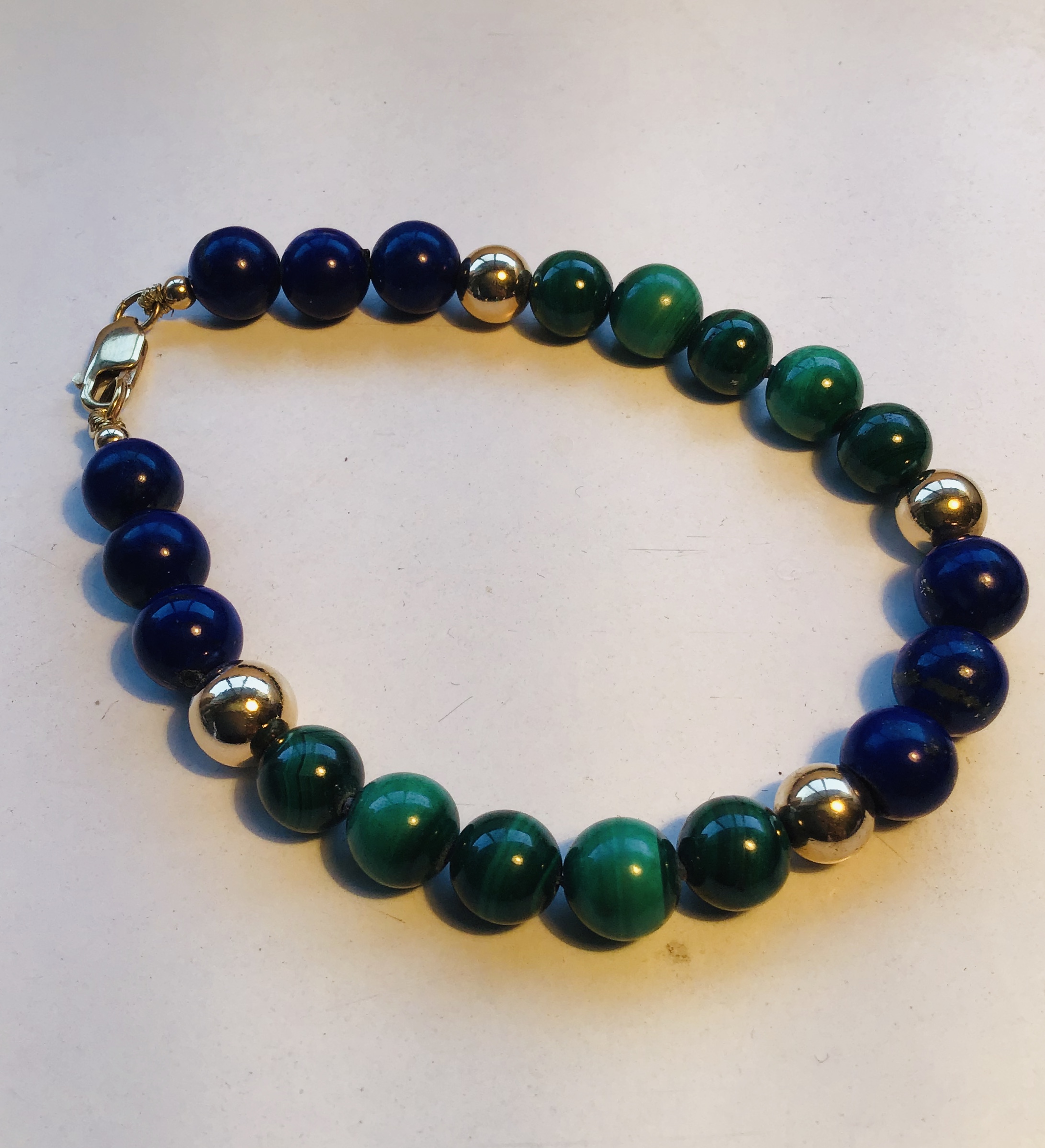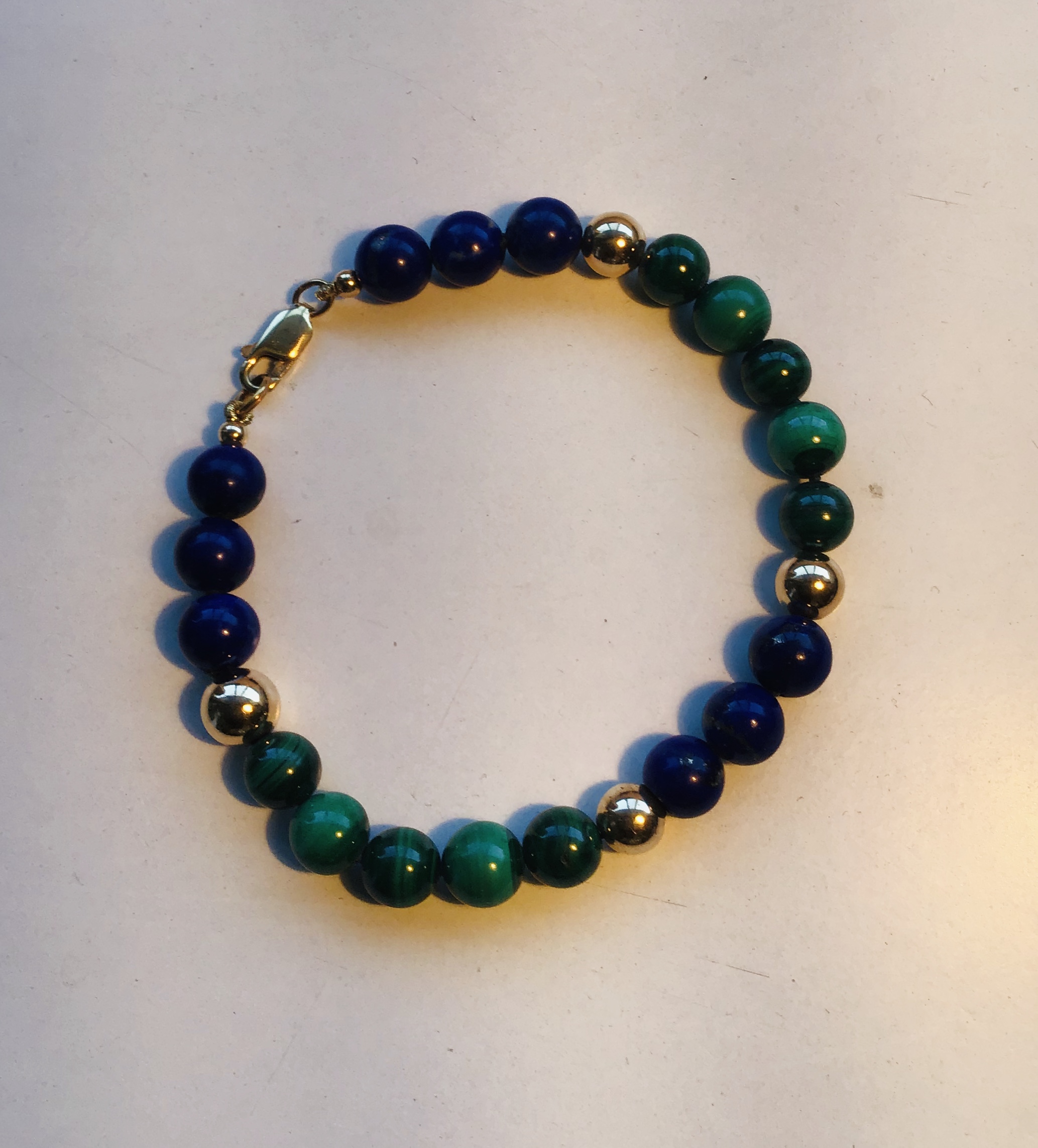 14k goldfilled BRACELET 8ml malaquite, lapislázuli